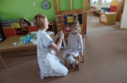 V únoru jsme se věnovali tématu „Lidské tělo a zdraví“. Proto jsme si domluvili s paní Vinterovou-zdravotní sestřičkou besedu na toto téma.