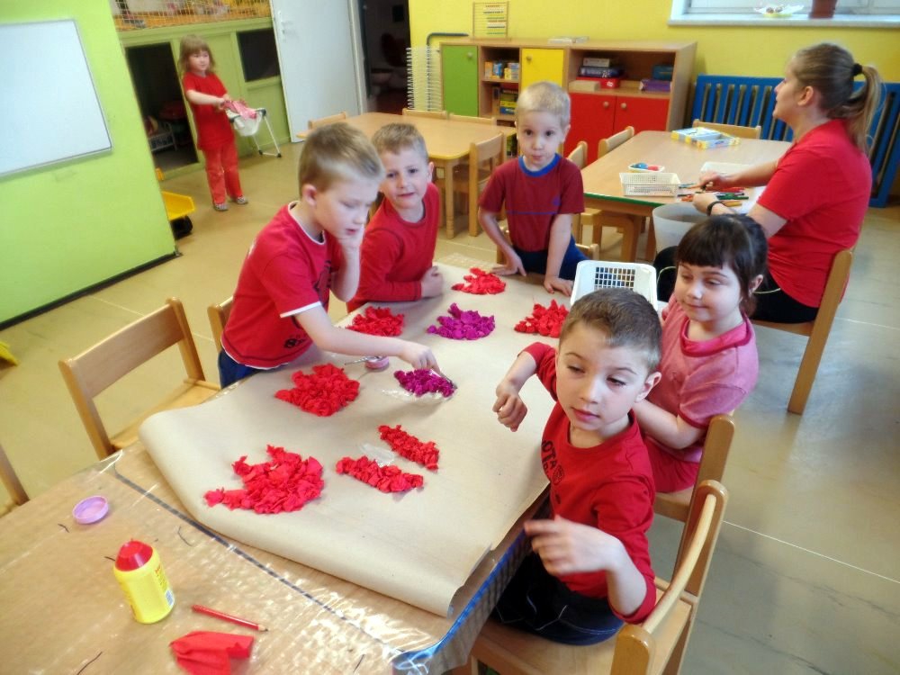 Ve dnech 3. - 6. 4. 2018 proběhl v naší škole projekt "Barevný týden". Každý den vládla jedna barva a té byly přizpůsobeny všechny činnosti. Společně s námi se tohoto projektu zúčastnily i školní děti. Všichni přišli oblečeni do příslušné barvy toho dne. Paní kuchařka uvařila jídlo v příslušné barvičce. V dané barvě byla i výzdoba třídy a jídelny. Všichni se těšili na každý barevný den.