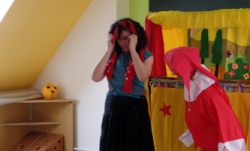 Dne 11. 4. 2018 navštívilo naší školu divadlo Úsměv ze Dvora Králové s pohádkou "Červená, stát!". Pohádka byla zaměřena na dopravní značky a pravidla pro chodce. Byla plná humorných situací a dětem se velmi líbila.