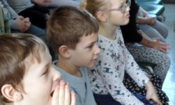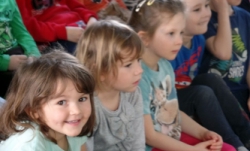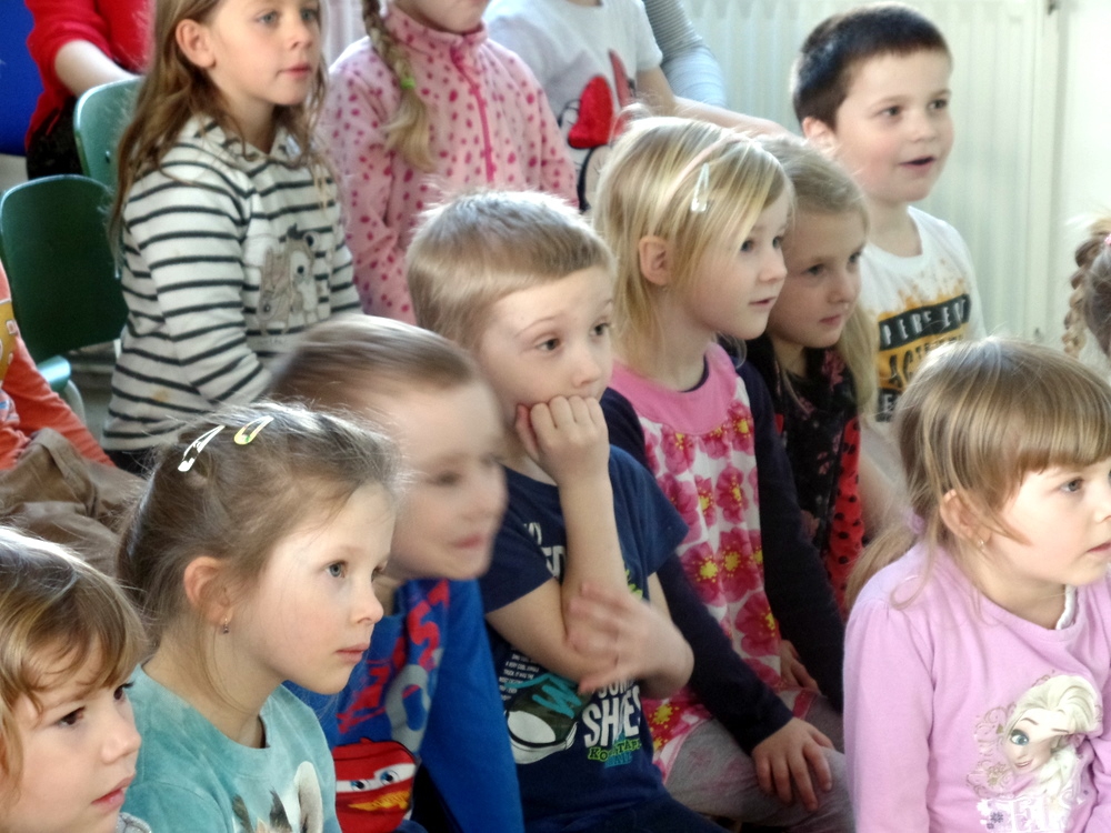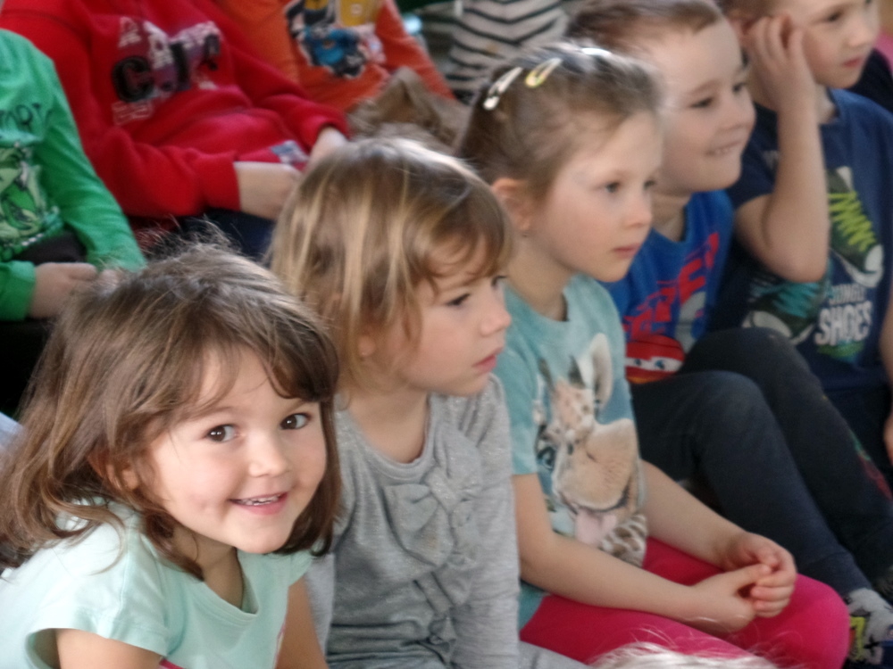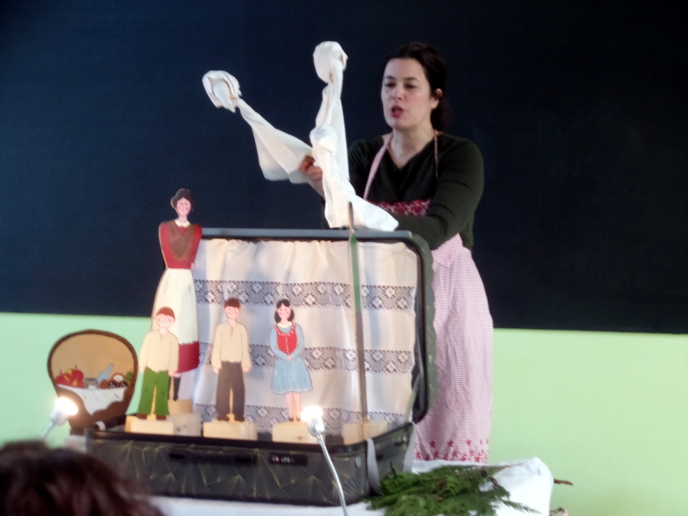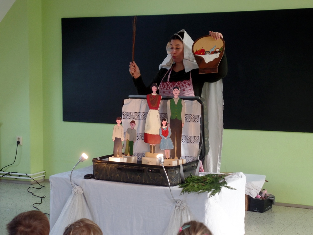 Představení si pro nás připravila jedna herečka, která pomocí jedné látkové panenky a plošných loutek přiblížila dětem tradice během roku. Hrou na kytaru a písničkami děti zaujala. představení se hodilo více pro děti starší, ale dětem se líbilo.