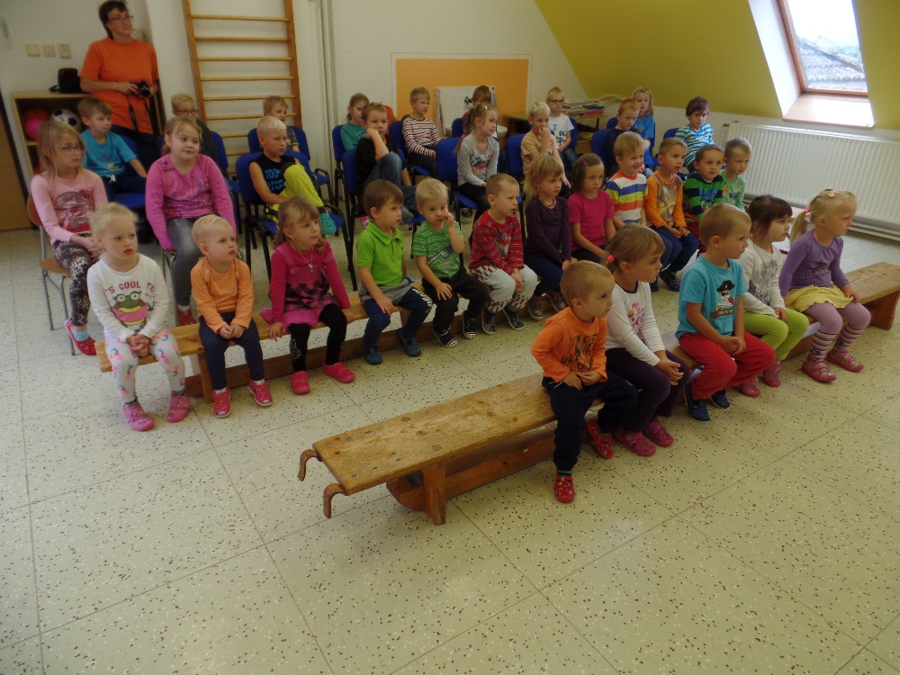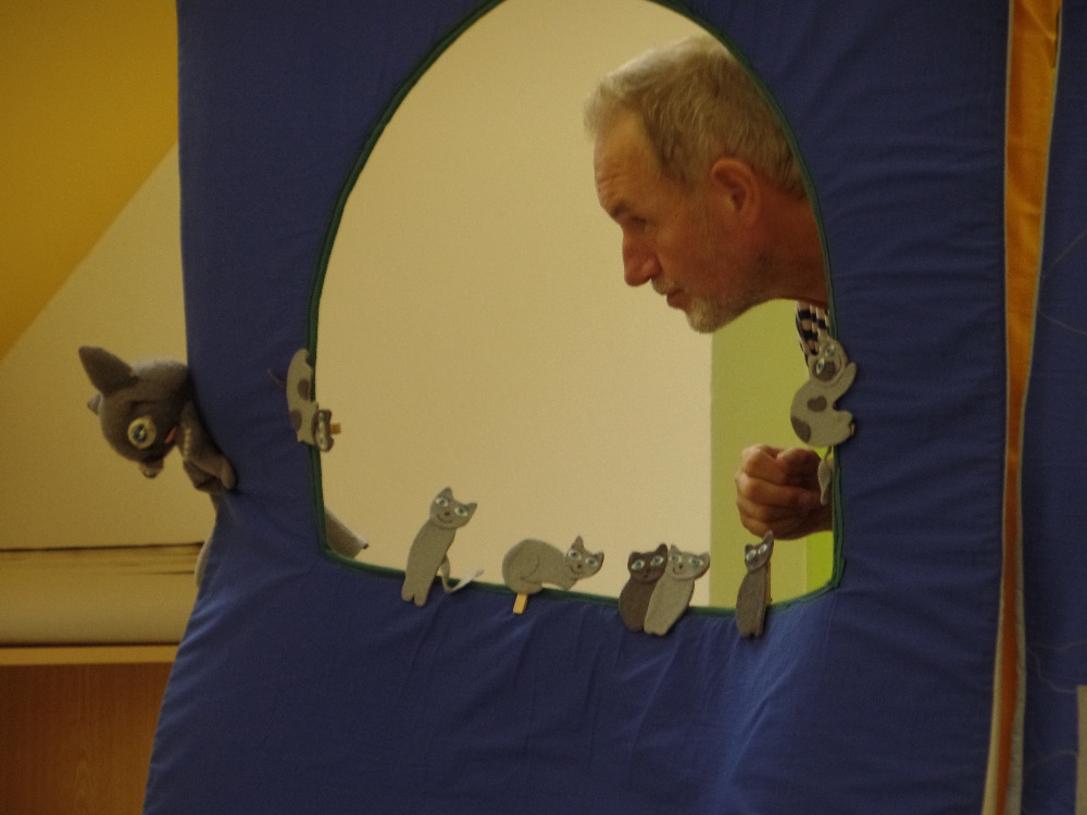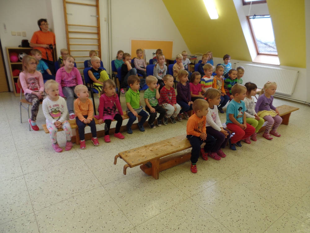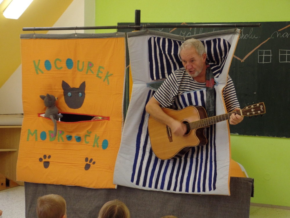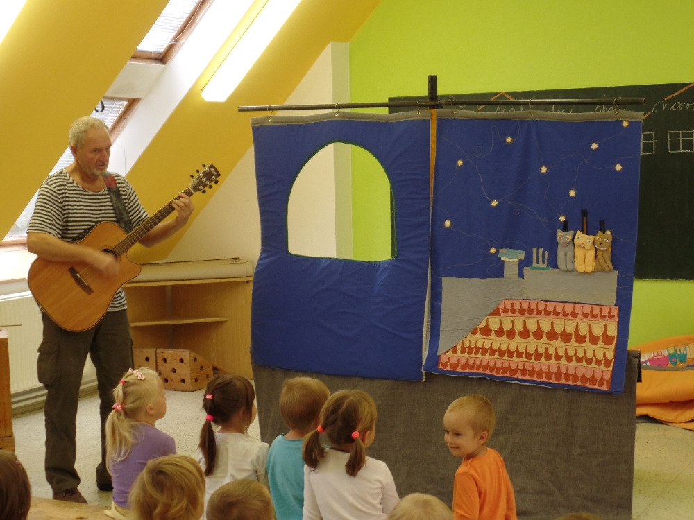 Ve čtvrtek 6.10. k nám do MŠ přijelo divadýlko Alejo s pohádkou „Kocour Modroočko“. Modroočko je ještě malé kotě, které se ještě teprve učí pořádnému kočičímu životu.