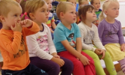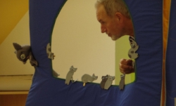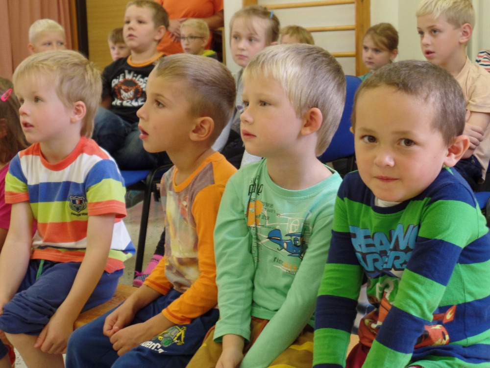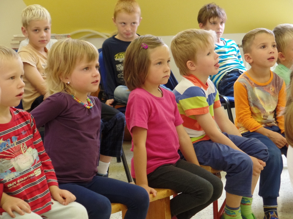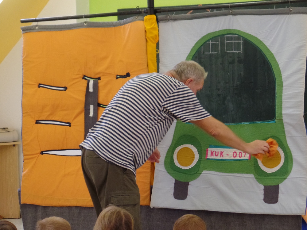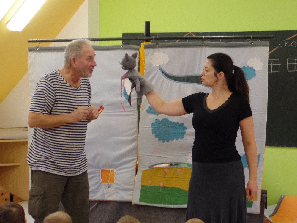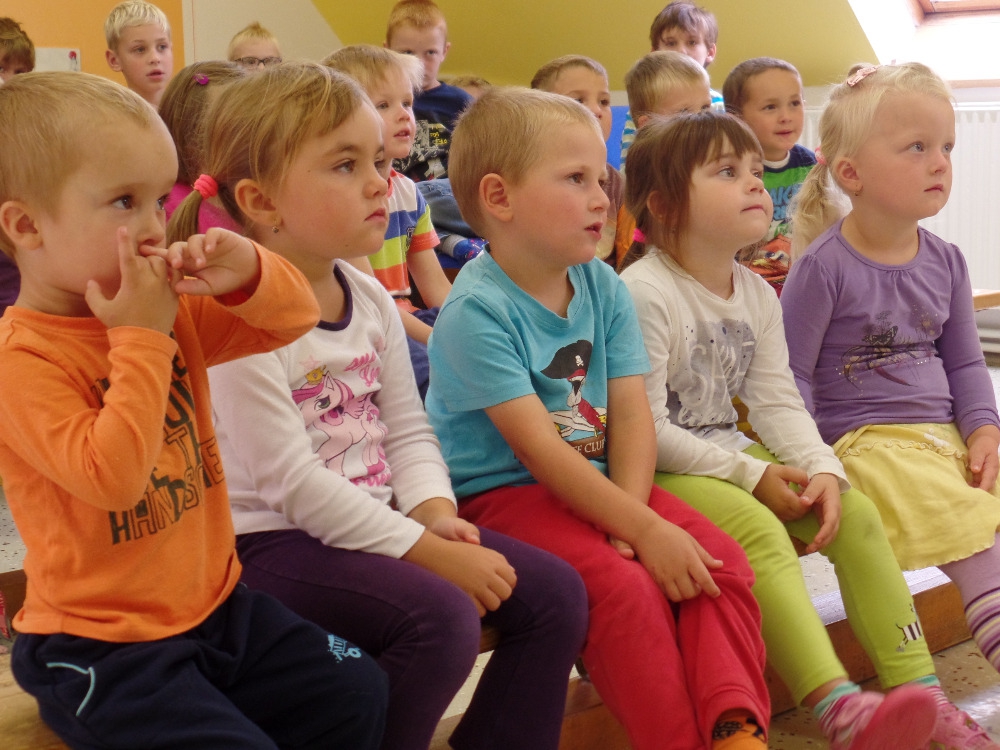 Ve čtvrtek 6.10. k nám do MŠ přijelo divadýlko Alejo s pohádkou „Kocour Modroočko“. Modroočko je ještě malé kotě, které se ještě teprve učí pořádnému kočičímu životu.