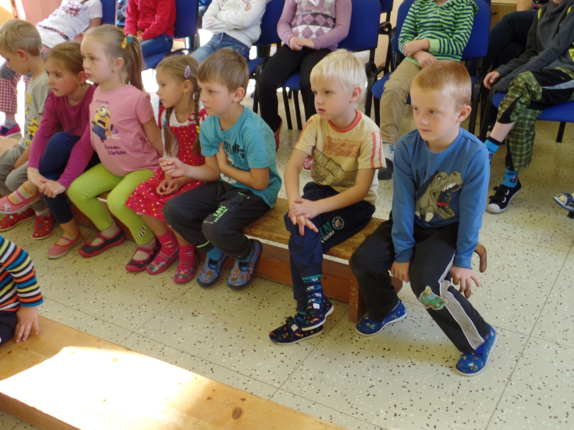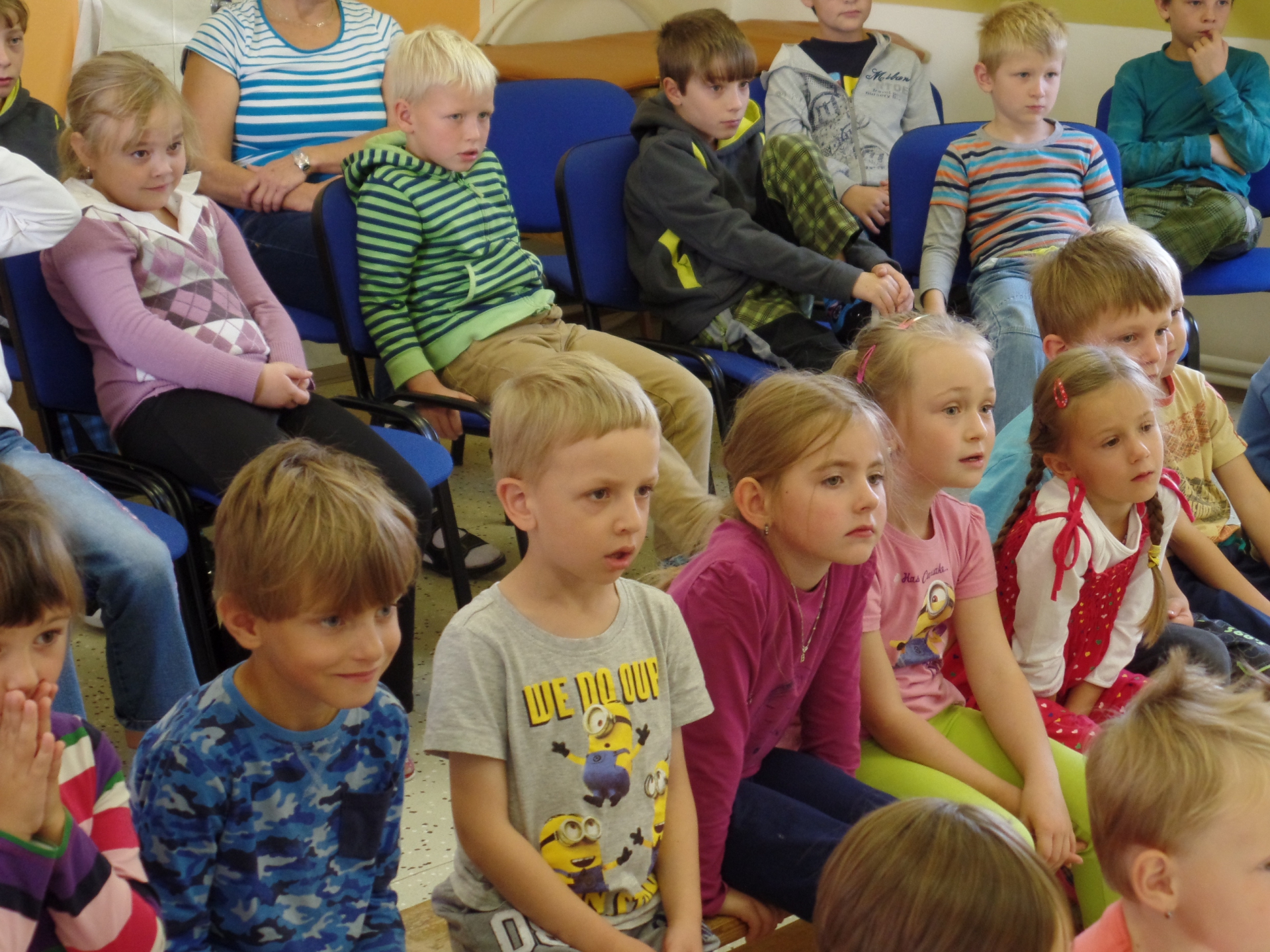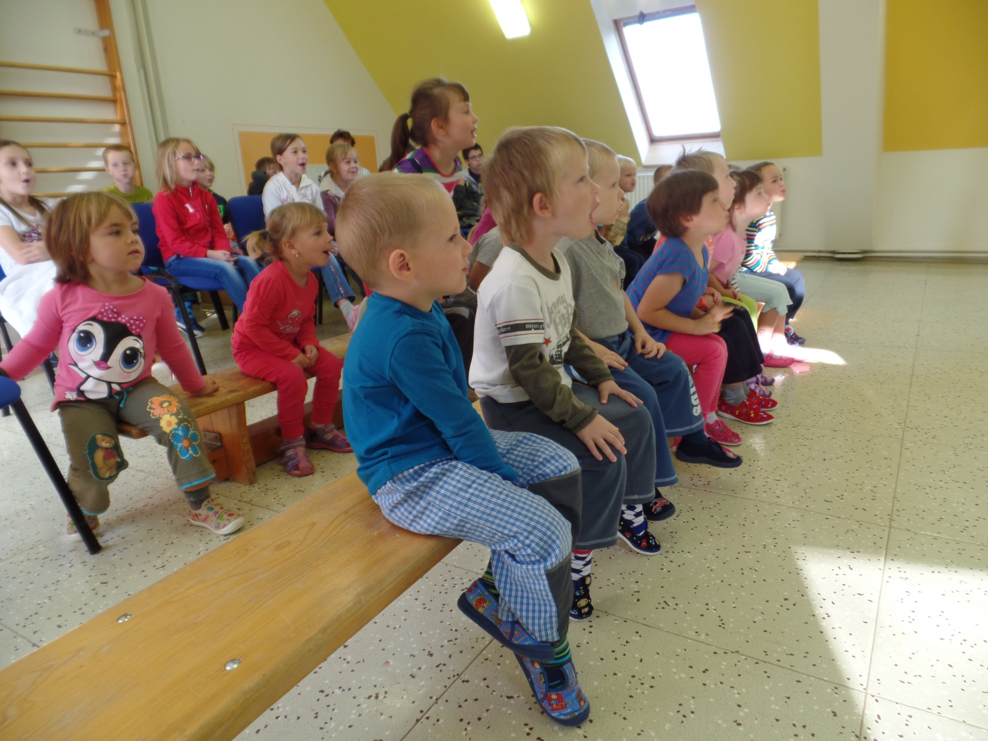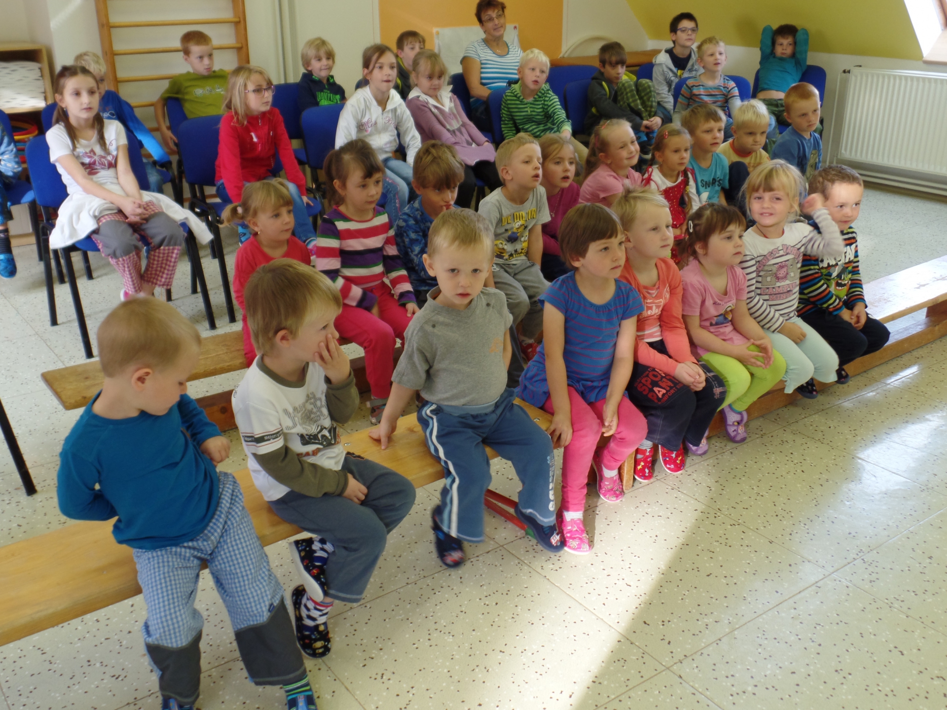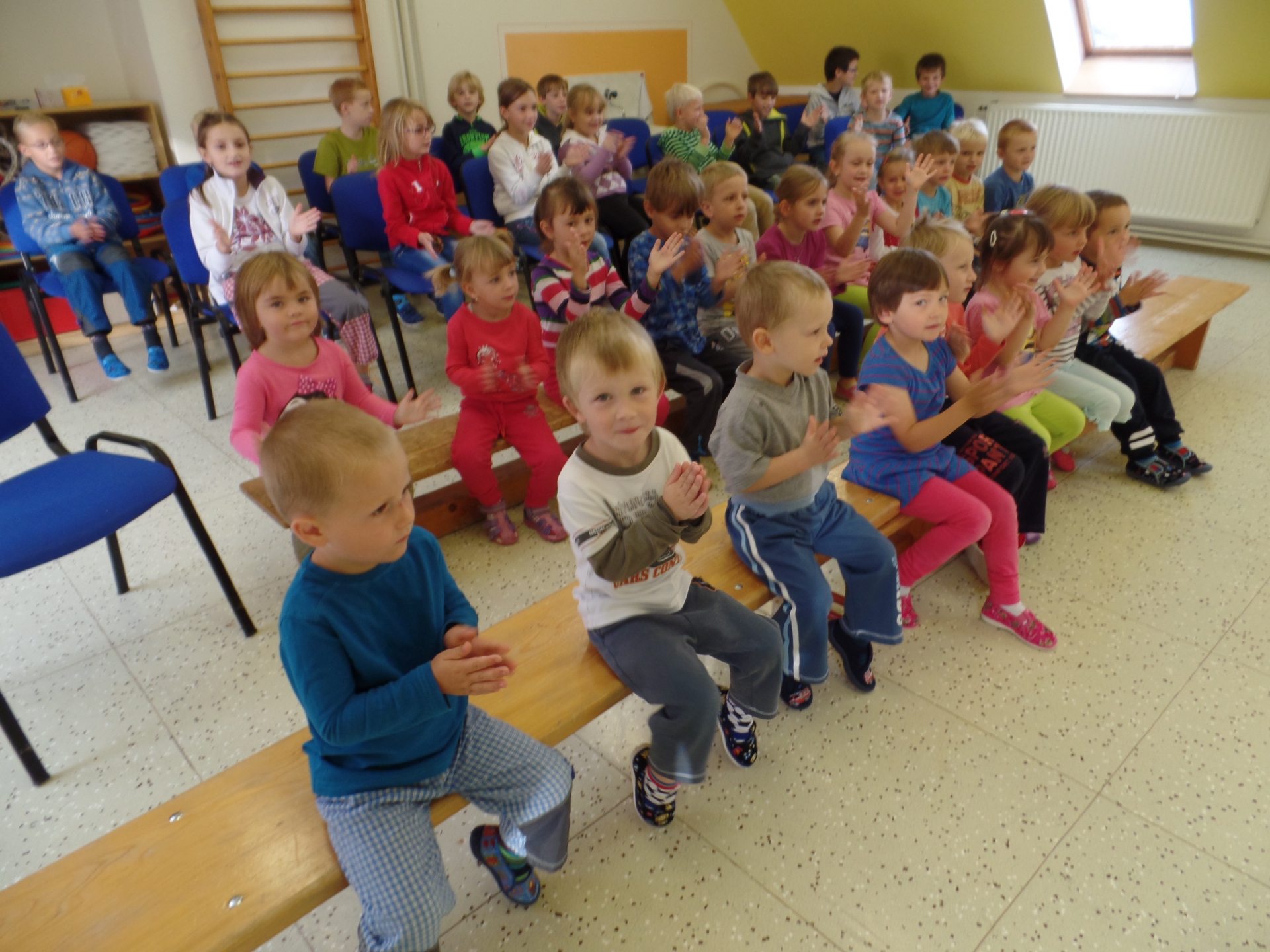V úterý 6.10.2015 k nám do mateřské školy přijelo divadýlko "Úsměv" ze Dvora Králové nad Labem s pohádkou "Míček Flíček".