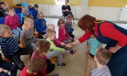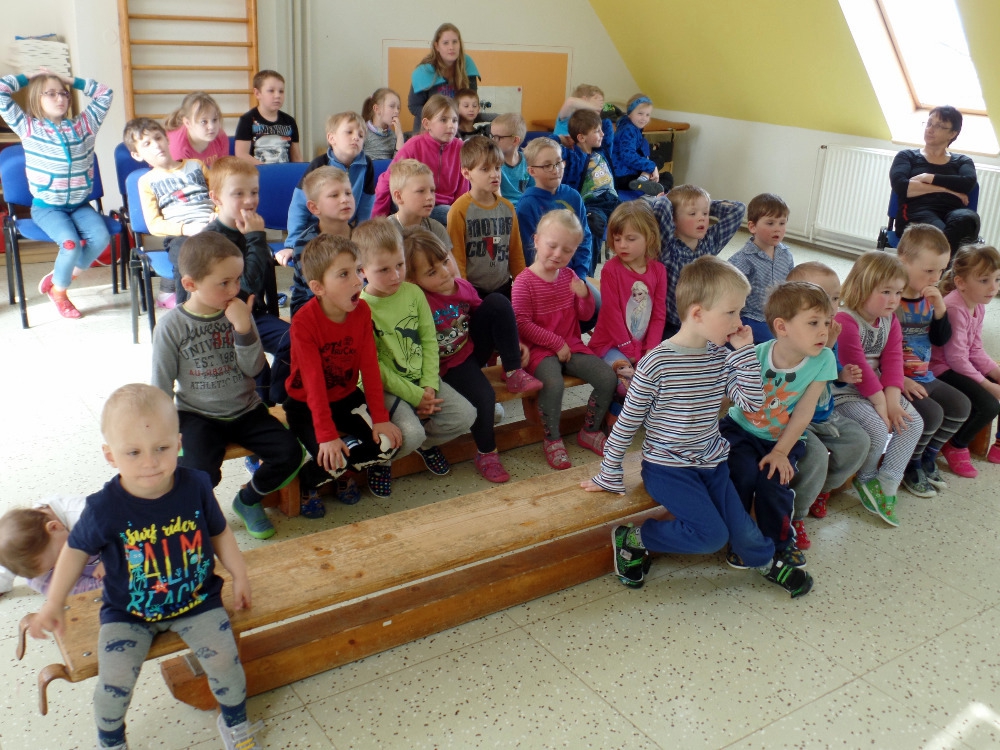Ve středu 19. dubna k nám do MŠ přijela paní Jarmila Vlčková s divadýlkem "Popelka". Klasická pohádka v loutkovém provedení byla provázena reprodukovanou hudbou a živým zpěvem, byla velice profesionálně předvedena.