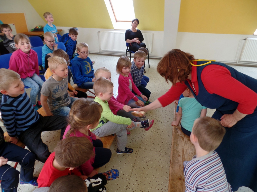 Když princ hledal Popelku podle velikosti střevíčku, byly vyzvány všechny dívky, aby střevíček vyzkoušely. Žádná z našich děvčátek však neměla tak malou a útlou nožku, žádná se do střevíčku nevešla.....