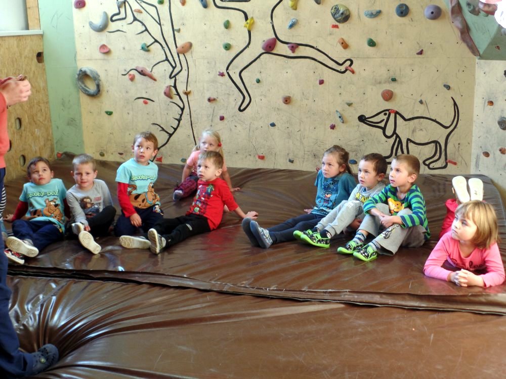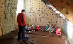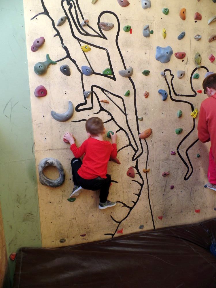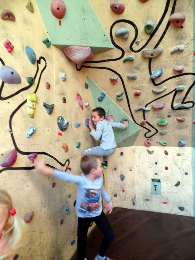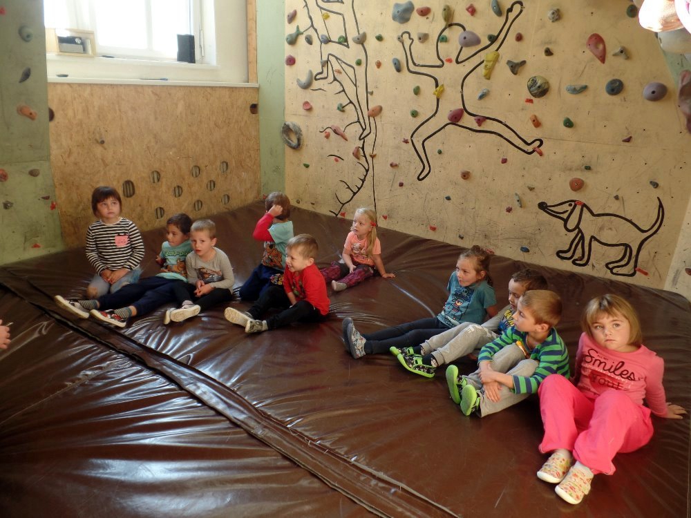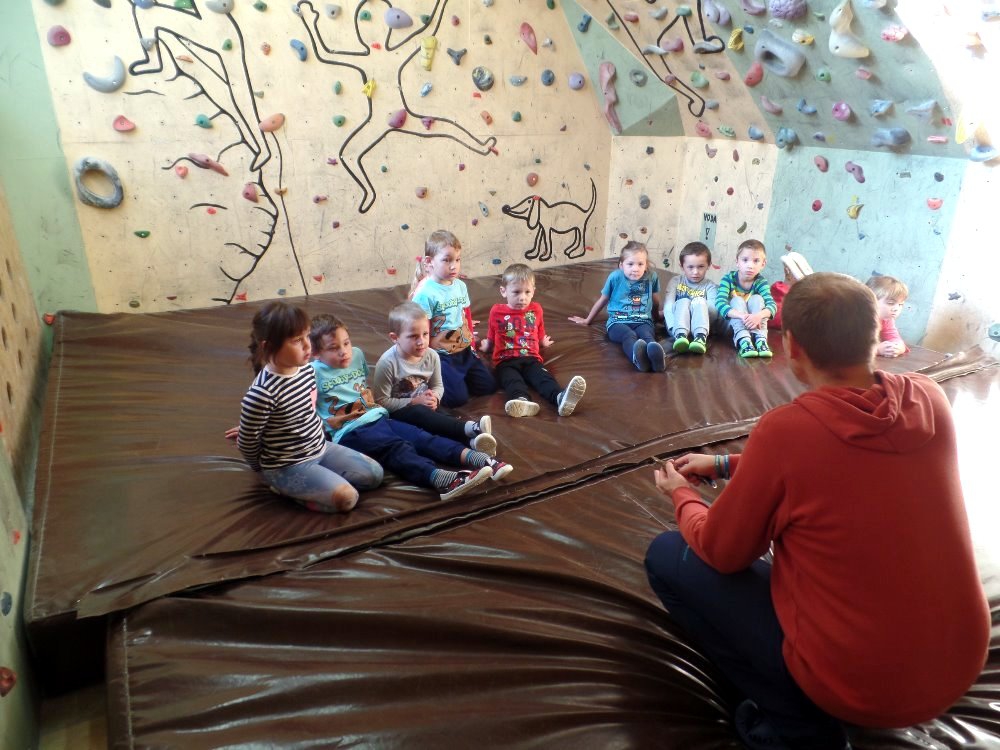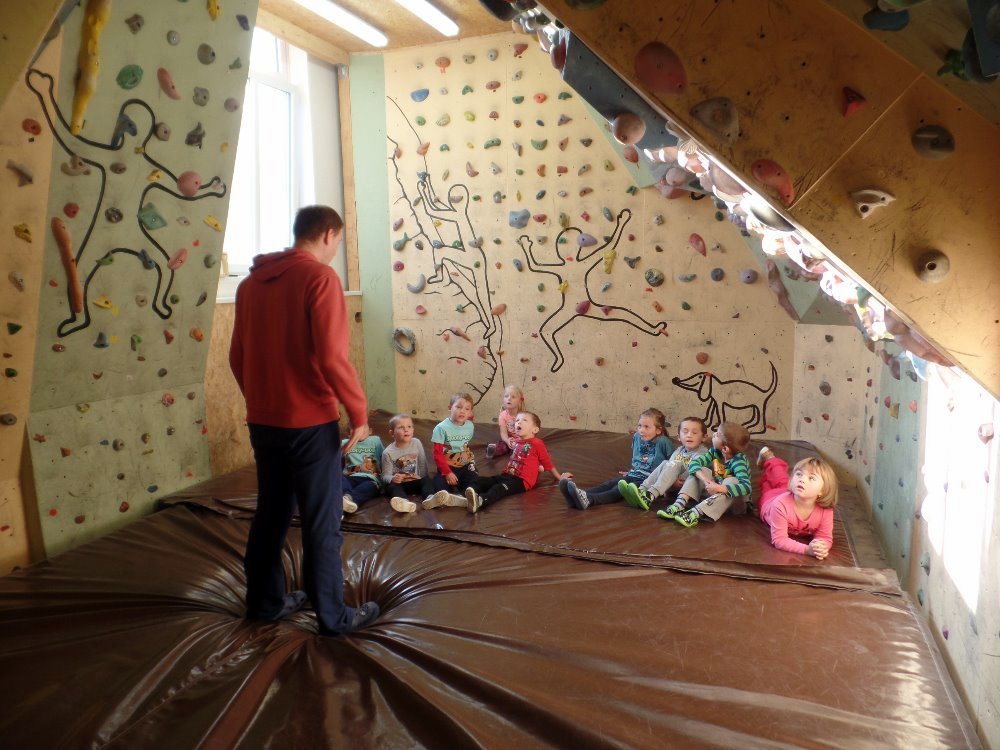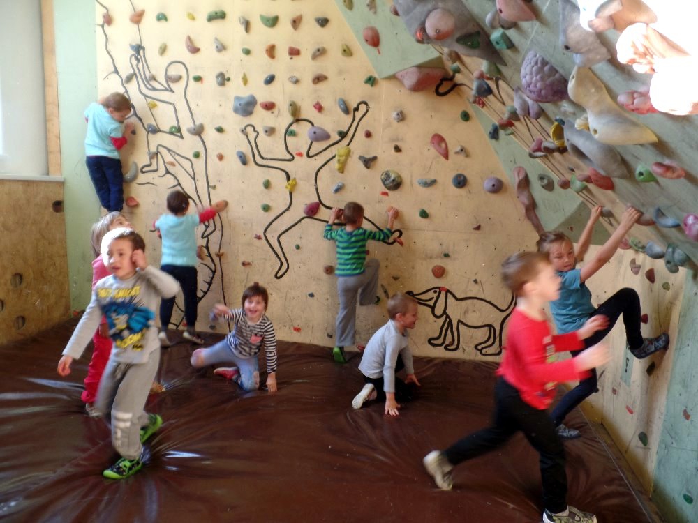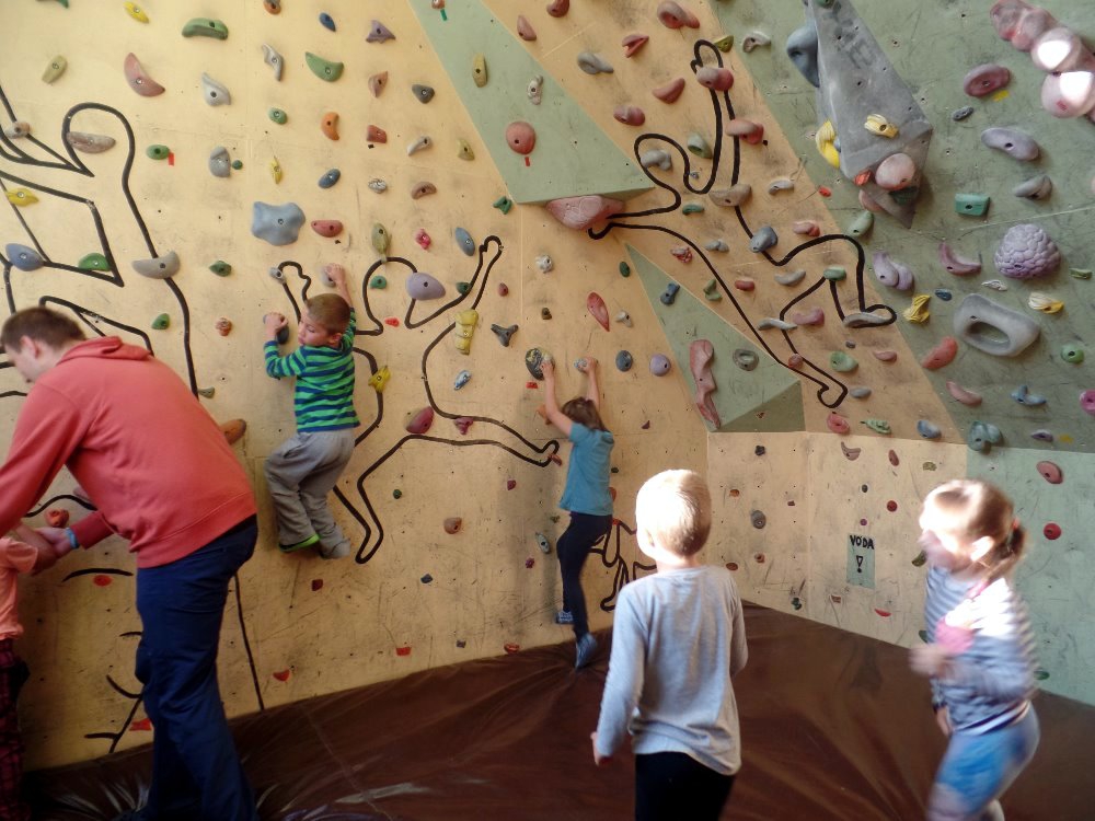Po svačince se děti rozdělily na dvě skupiny. Jedna odešla na horolezeckou stěnu, kde si zkusily vylézt na různě složité části stěny a zahrály si hry. Druhá skupina šla do keramické dílny, kde si děti vyrobily vánoční svícny z hlíny. potom se skupiny vyměnily. Strávili jsme velmi pěkné dopoledne.