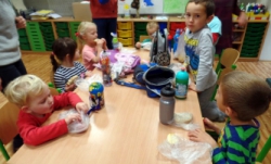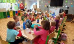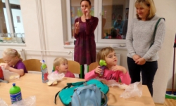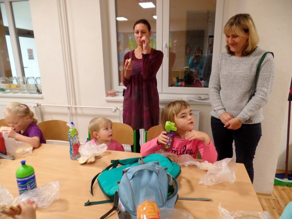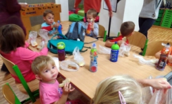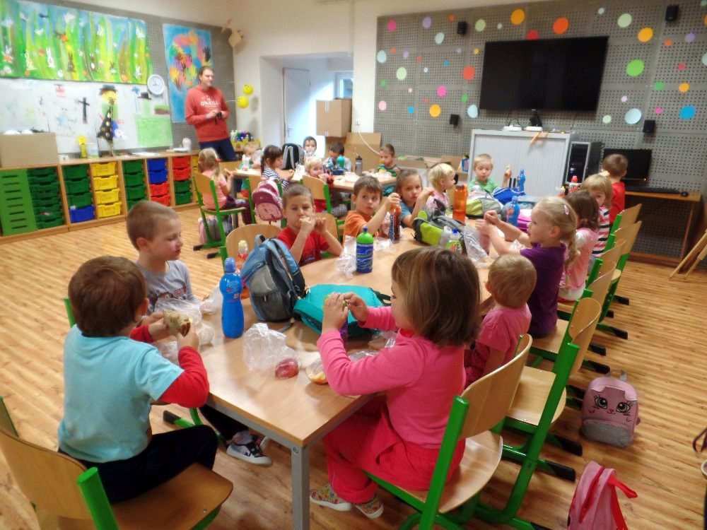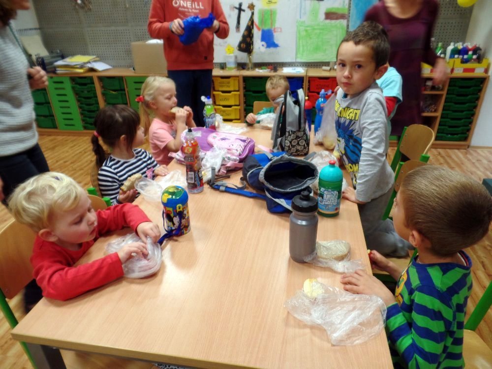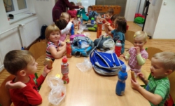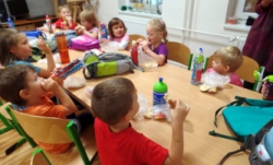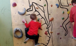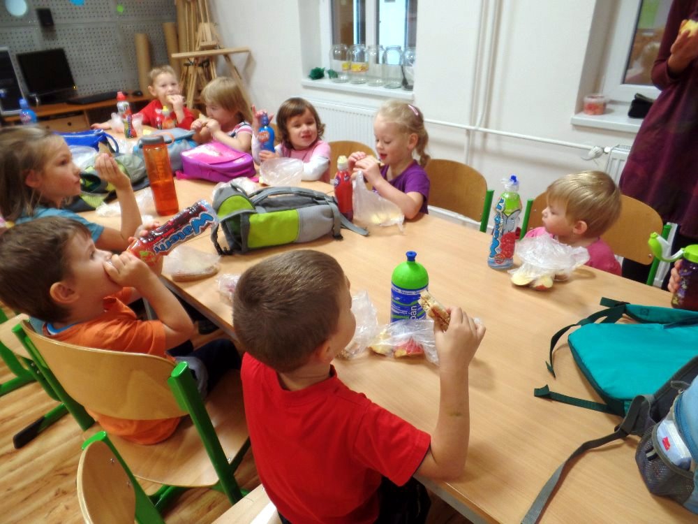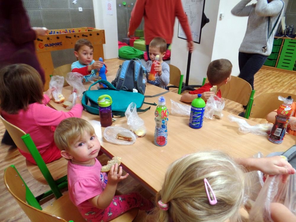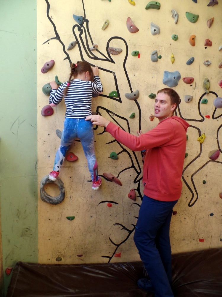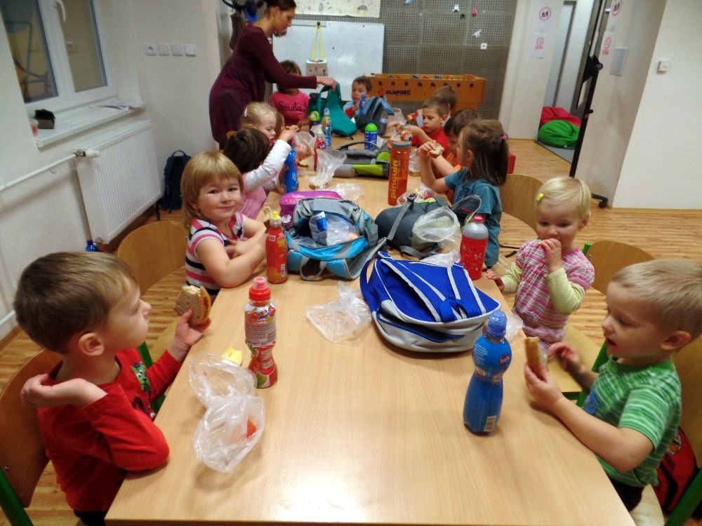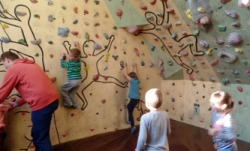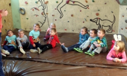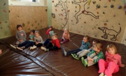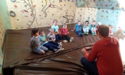 Po svačince se děti rozdělily na dvě skupiny. Jedna odešla na horolezeckou stěnu, kde si zkusily vylézt na různě složité části stěny a zahrály si hry. Druhá skupina šla do keramické dílny, kde si děti vyrobily vánoční svícny z hlíny. potom se skupiny vyměnily. Strávili jsme velmi pěkné dopoledne.
