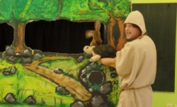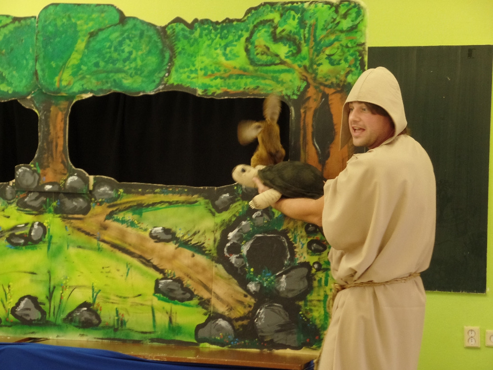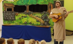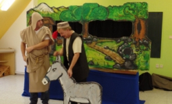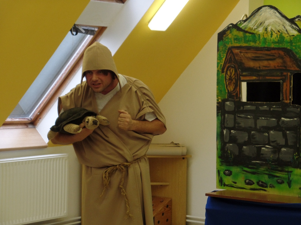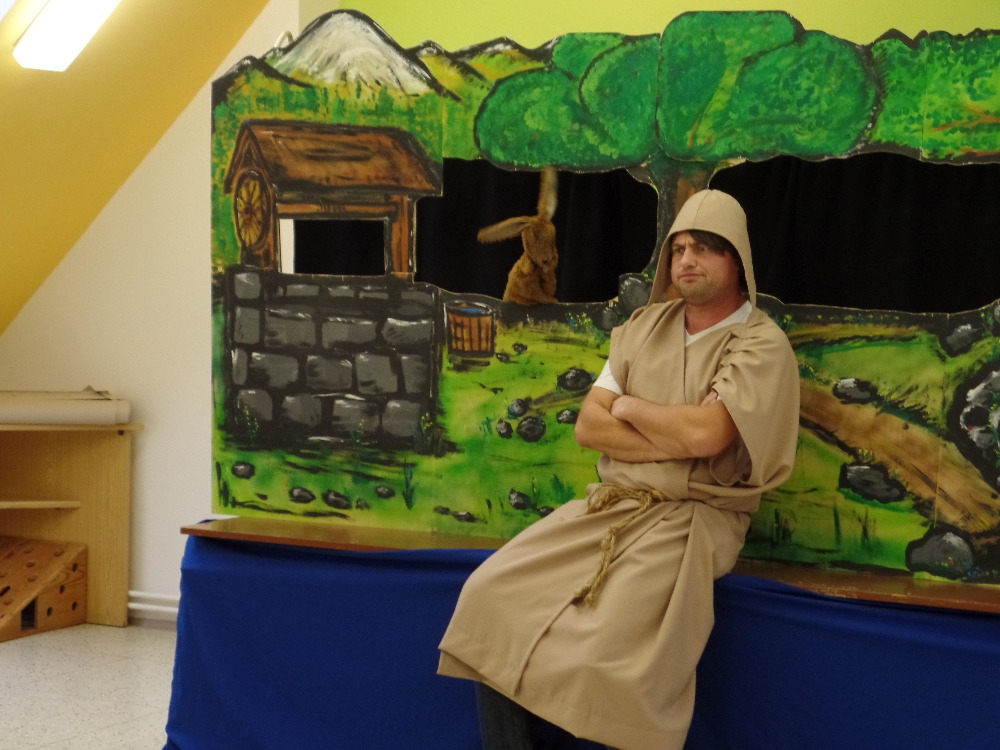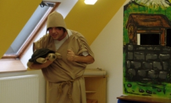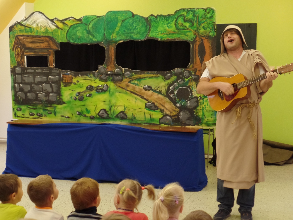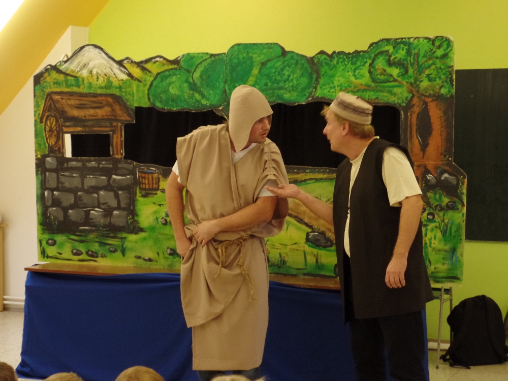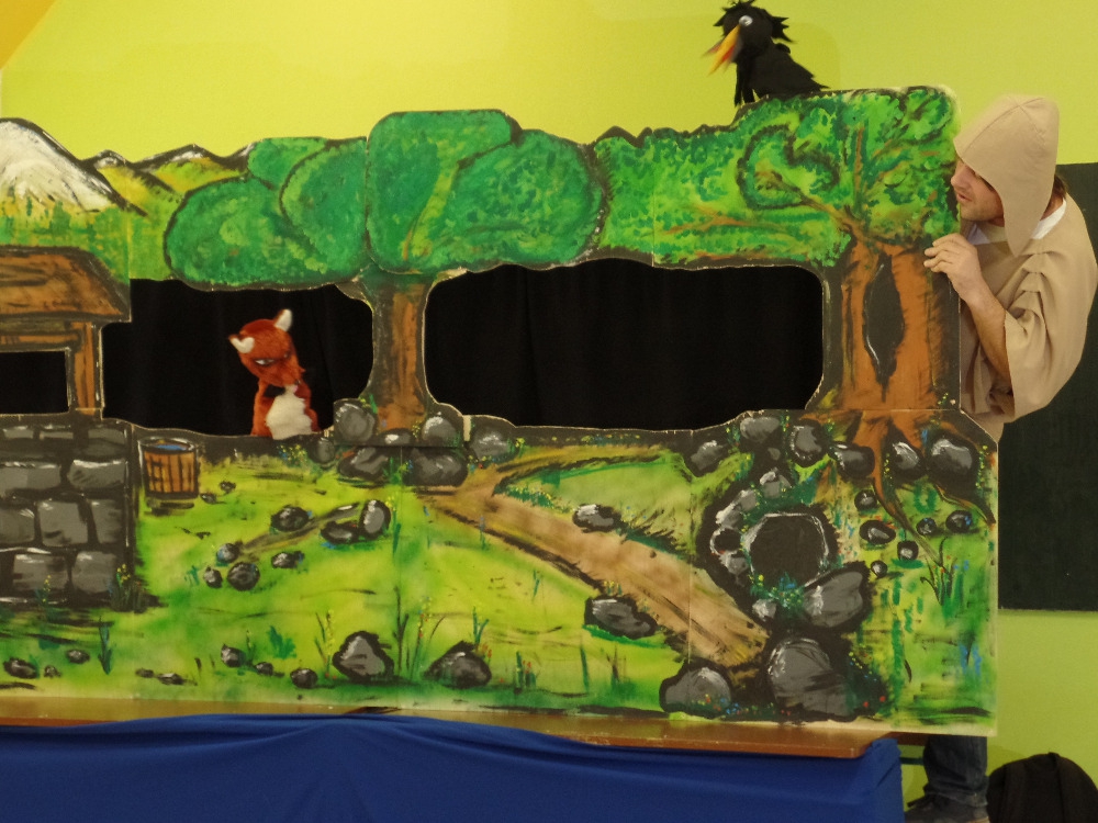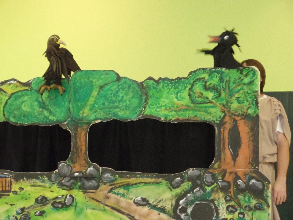 Herci ke svému vystoupení využívali kulisy, makety, loutky zvířátek, kytaru a své veselé herecké umění v dobových kostýmech. Celkově pojali bajky velice humorným způsobem, děti se dosytosti nasmály. Divadlo se nám moc líbilo.