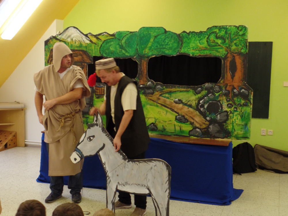 Divadýlko z Hradce Králové s představením „Ezopovy bajky“ k nám přijelo v pondělí 17.10. Na divadlo se přijely podívat i děti z MŠ z Velkých Petrovic.