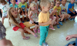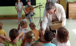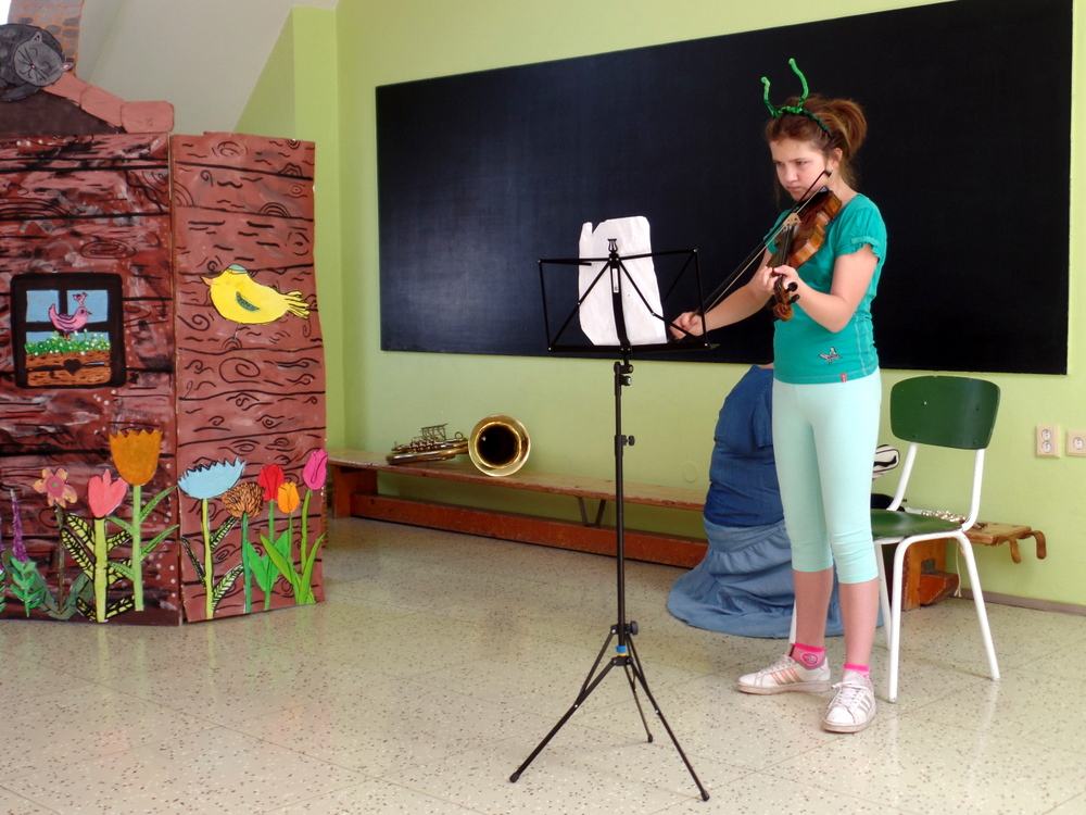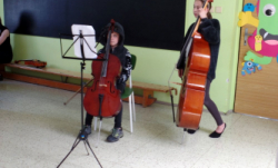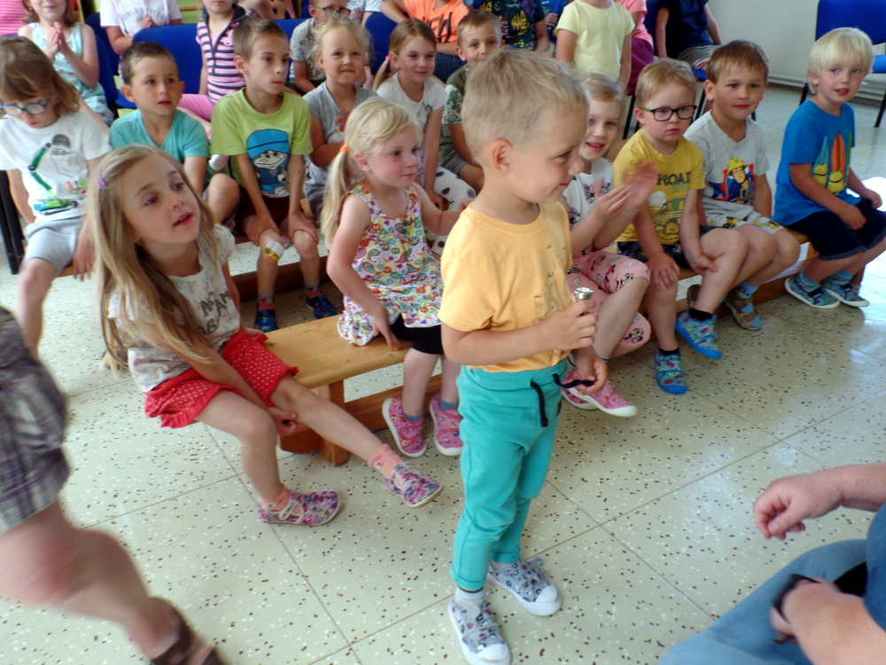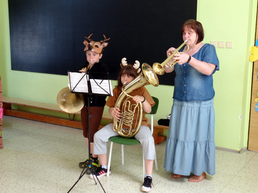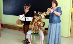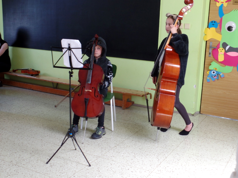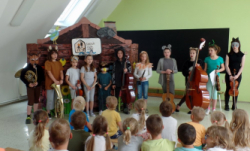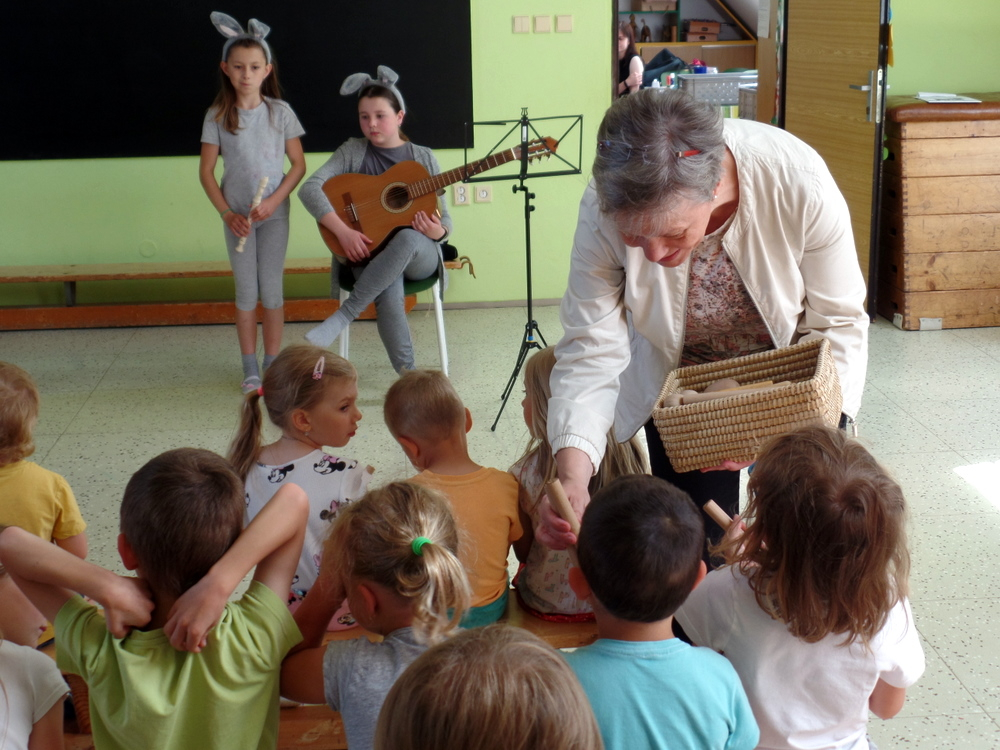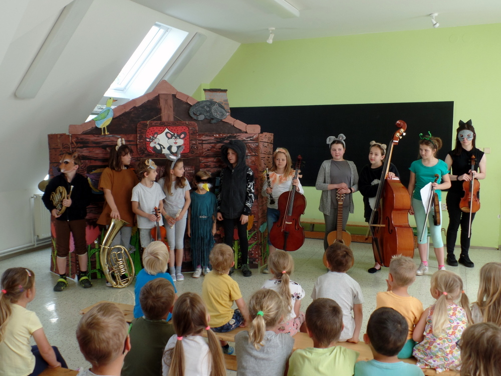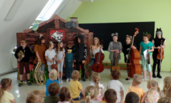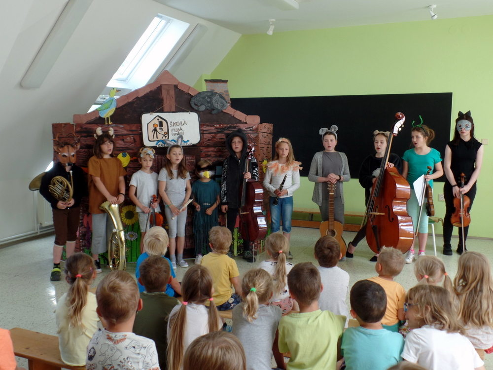 V MŠ nás navštívili žáci z polické školy umění a zahrály nám pohádku "Boudo, budko". Děti seznámili s hudebními nástroji formou hádanek. Naučili děti názvům hudebních nástrojů a jejich zařazení mezi strunné a dechové. Děti si zahrály na rytmické nástroje a vyzkoušely si, jak je těžká hra na nástroje dechové. Pohádka se dětem velmi líbila.