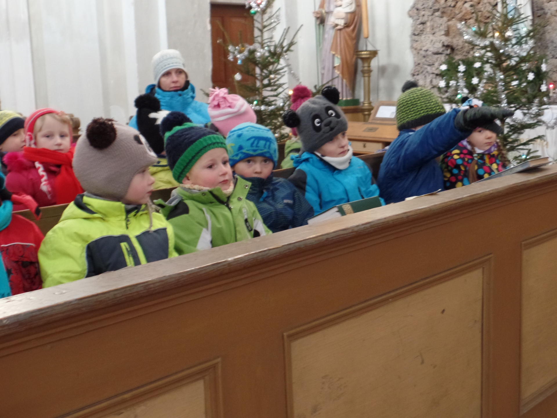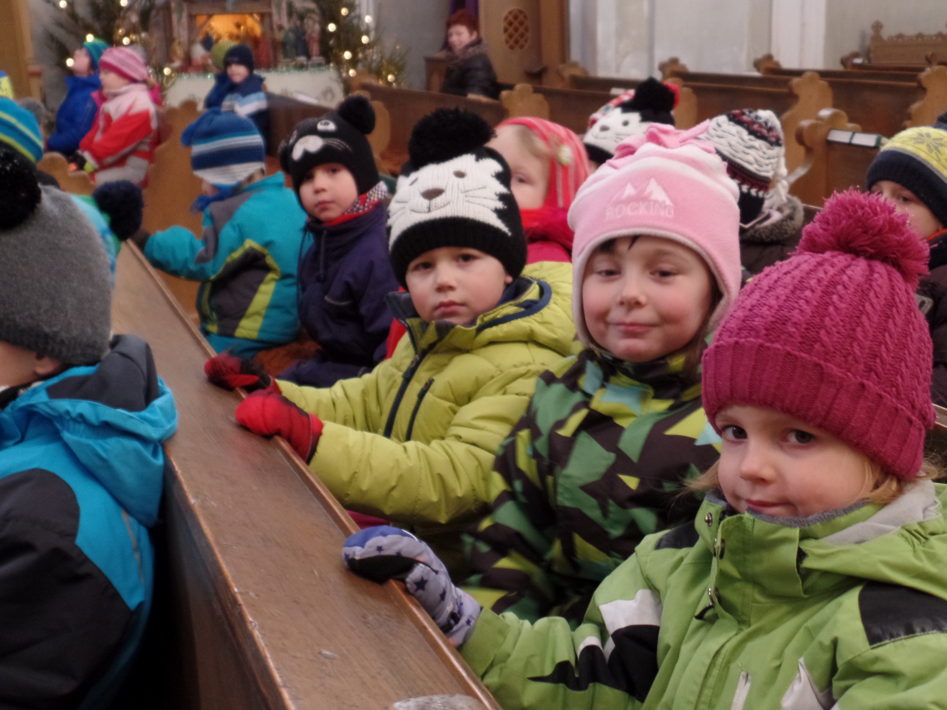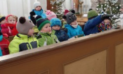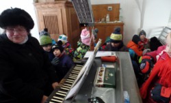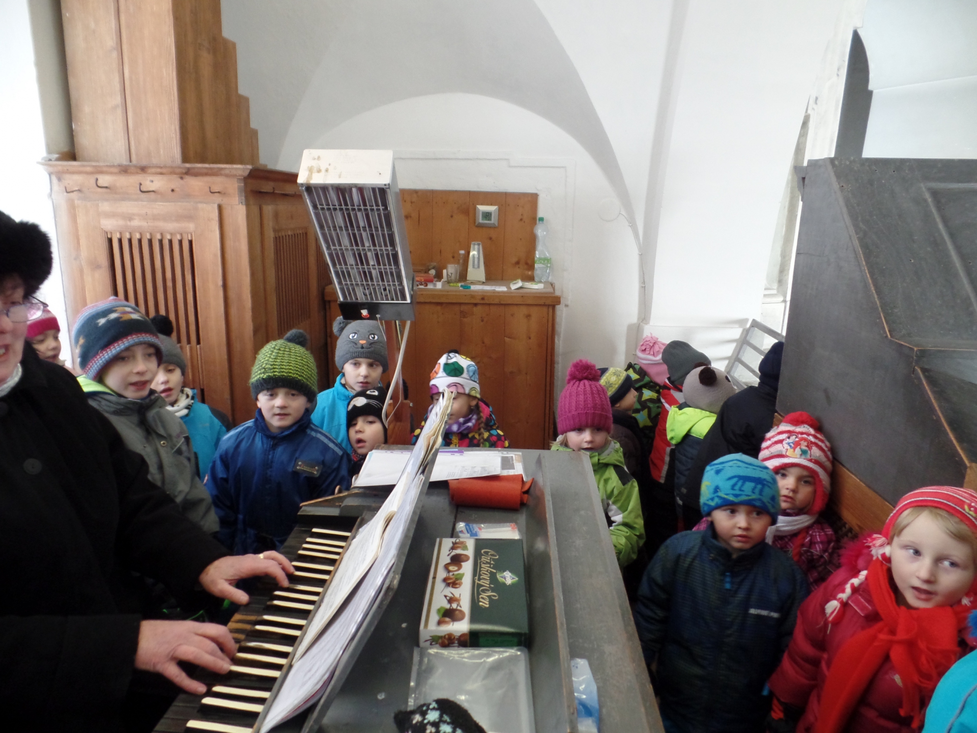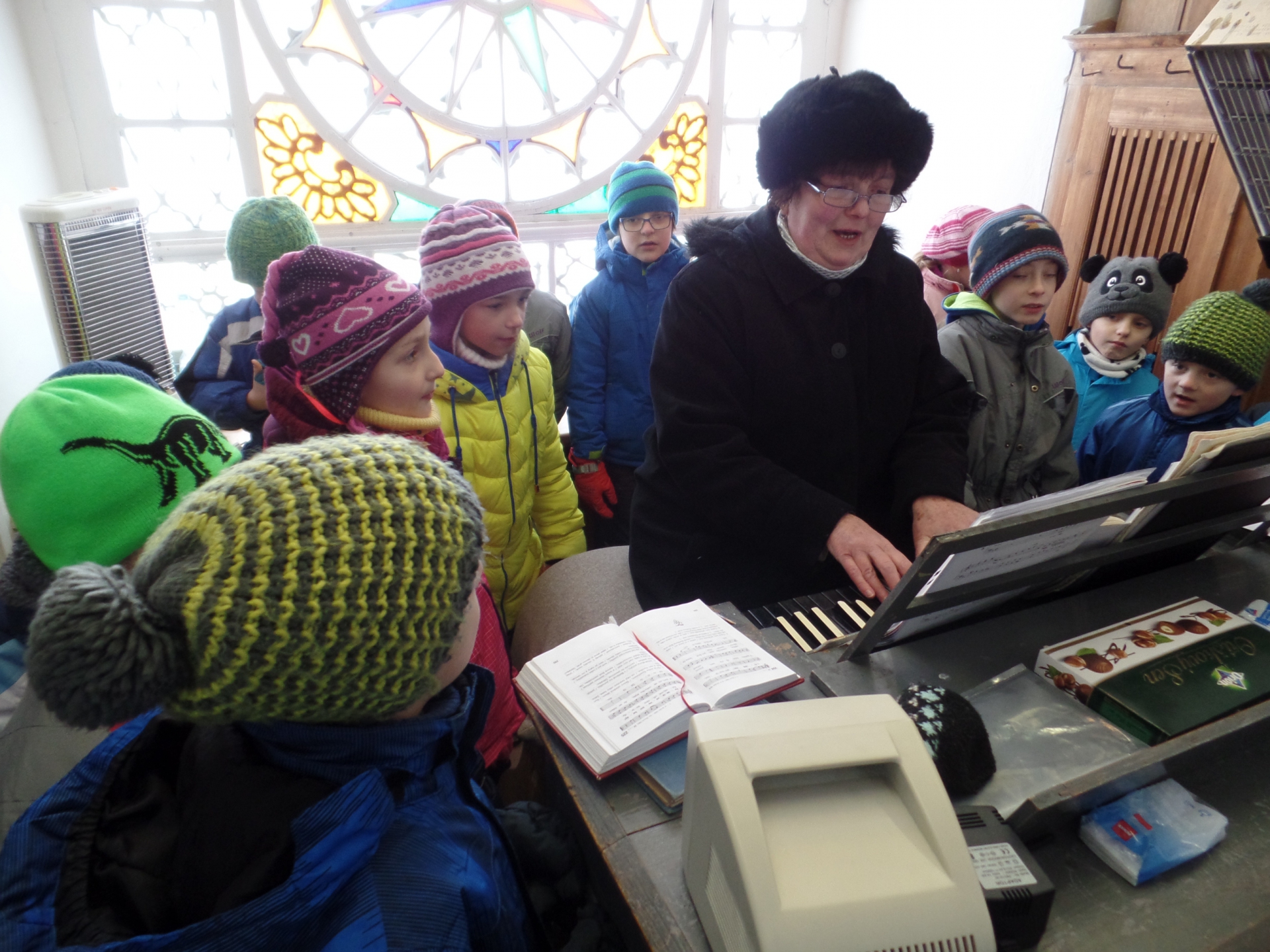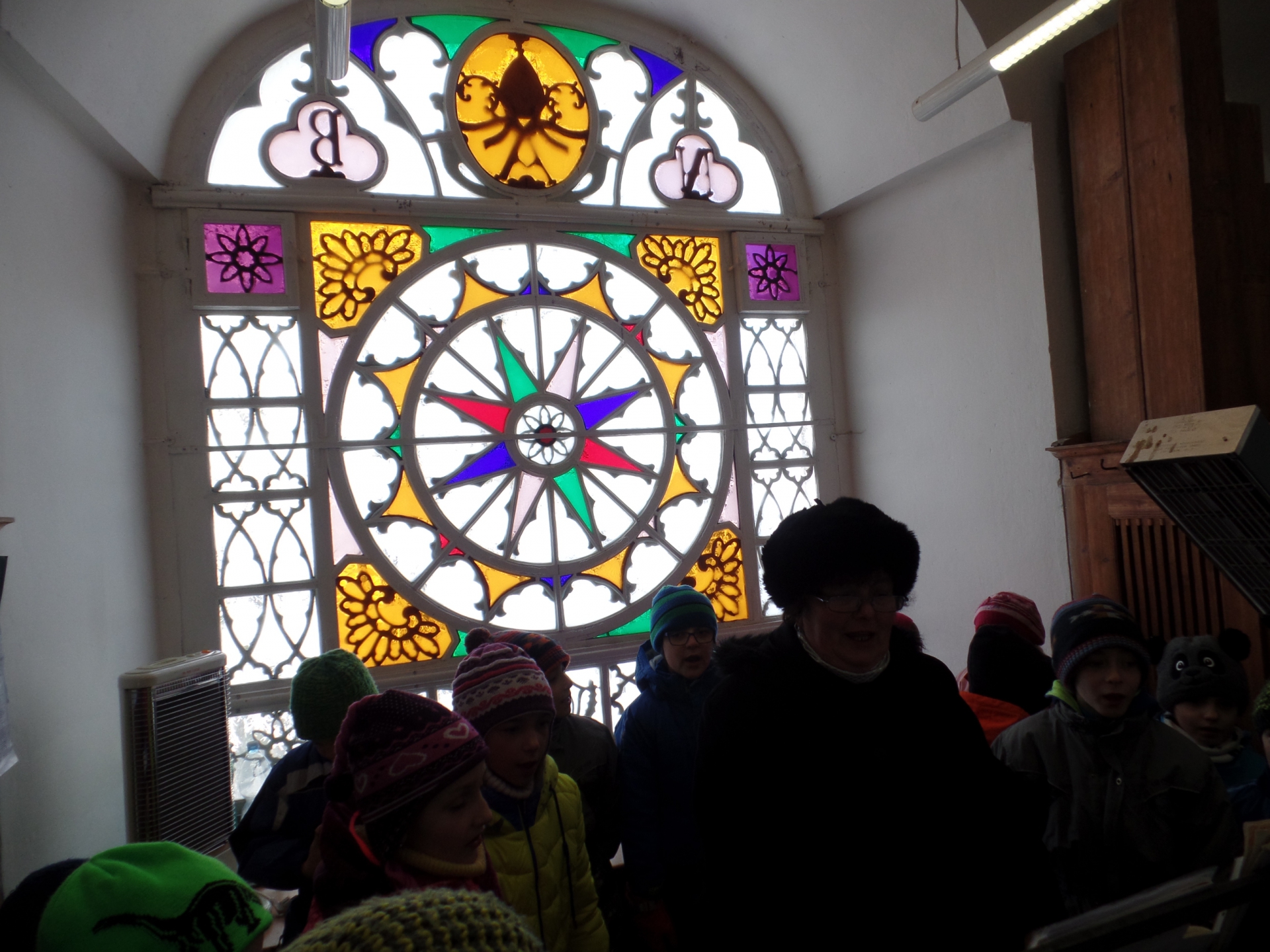 Měli jsme možnost prohlédnout si vánoční výzdobu kostela i betlém. Poté jsme po točitých schodech vystoupali až k varhanům. Pohled do prostoru kostela z výšky byl pro spoustu dětí nevšedním zážitkem. Za varhanního doprovodu pí Genertové jsme si zazpívali několik vánočních koled a společně si zavzpomínali na Vánoce. Děkujeme paní Genertové za zprostředkování akce, výklad a za všechny odpovědi na zvídavé dětské otázky.