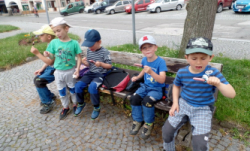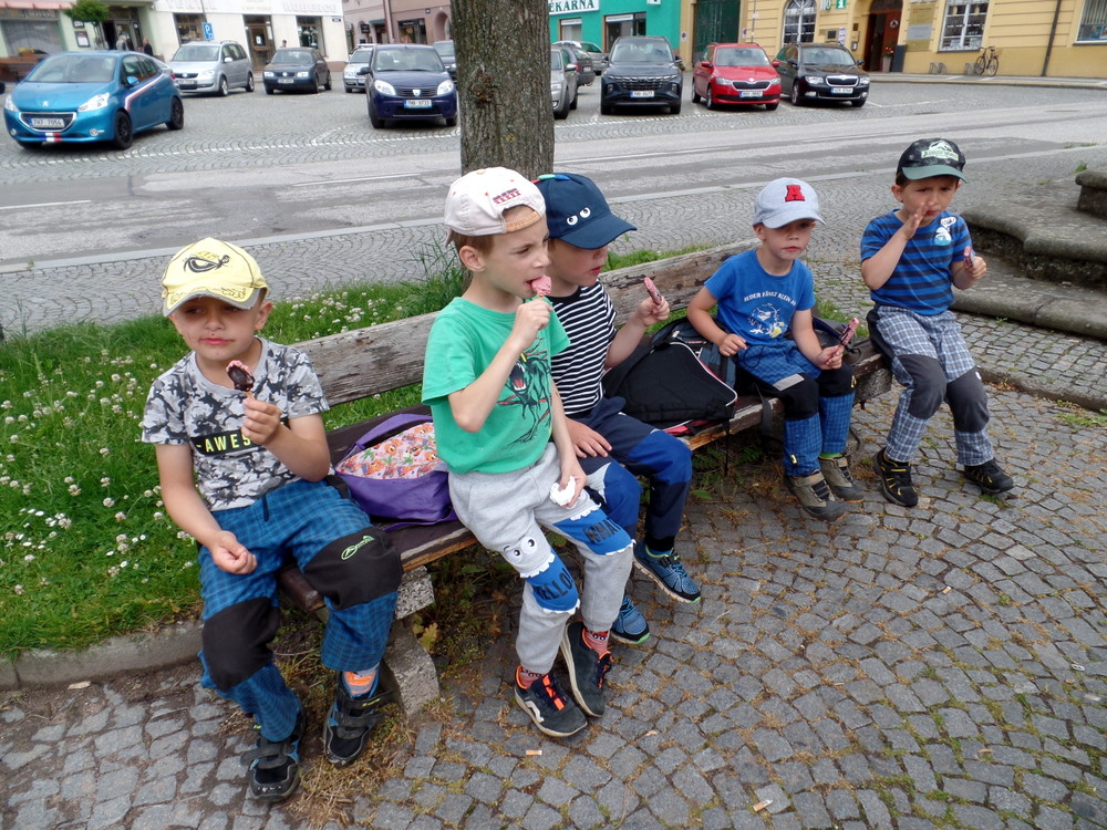 Dne 9. 6. jsme odpoledne s dětmi odjeli do Police nad Metují. Prohlédli jsme si náměstí a u Julinky si dali na osvěžení nanuky. Rozdělili jsme se na dvě skupiny. První šla vyznačit šipkovanou a po chvíli se vydala druhá skupina na její plnění.
