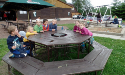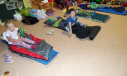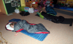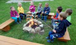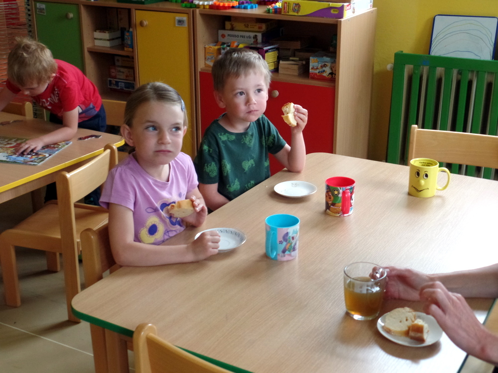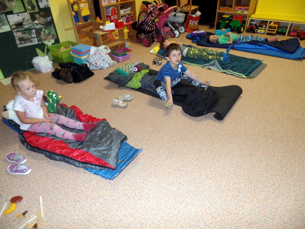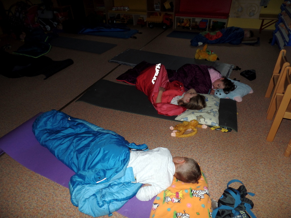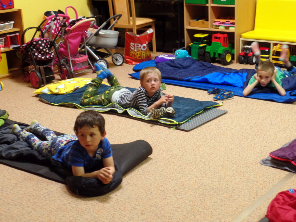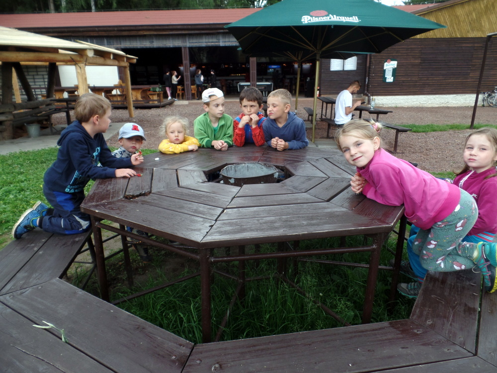 Sešli jsme se opět na Zděřině, kde se děti pohoupaly na houpačkách a užily si hraní na pískovišti. Poté jsme sešli dolů do Velkých Petrovic na zastávku a odsud jsme se vrátili zpět do Bezděkova. Na zahradě jsme si opekli vuřty k večeři, děti si pohrály a po večeři jsme se šli umýt a připravit spacáky a karimatky na spaní. Největší událostí byla stezka odvahy, kdy děti samotné s baterkou šly po měsíčním paprsku až našly poklad. Unavené zalehly do spacáků. Ráno jsme snídali bábovku, kterou si děti samy umíchaly a p. kuchařka nám ji upekla.