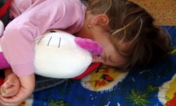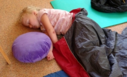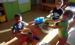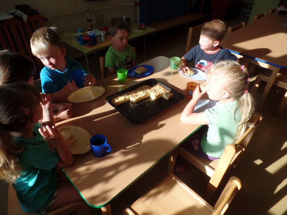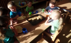 Ráno byla k snídani naše super jablíčková buchta a čaj. Děti dostaly pro vzpomínku na Nonstop školku diplomy.