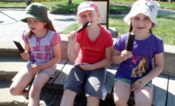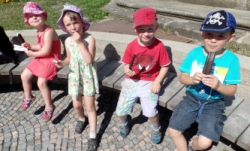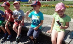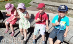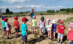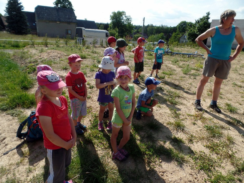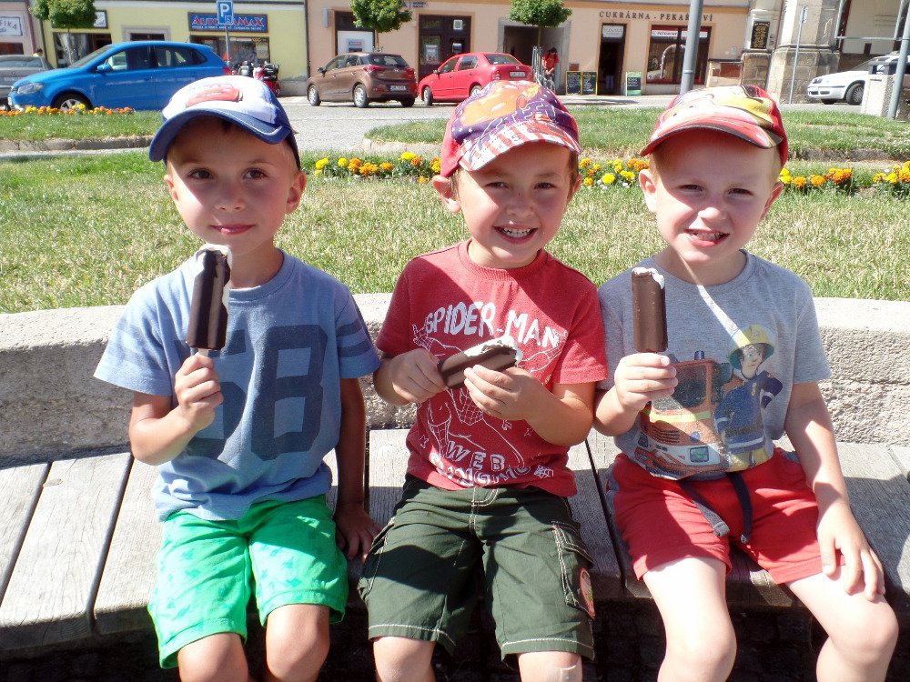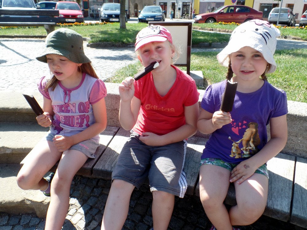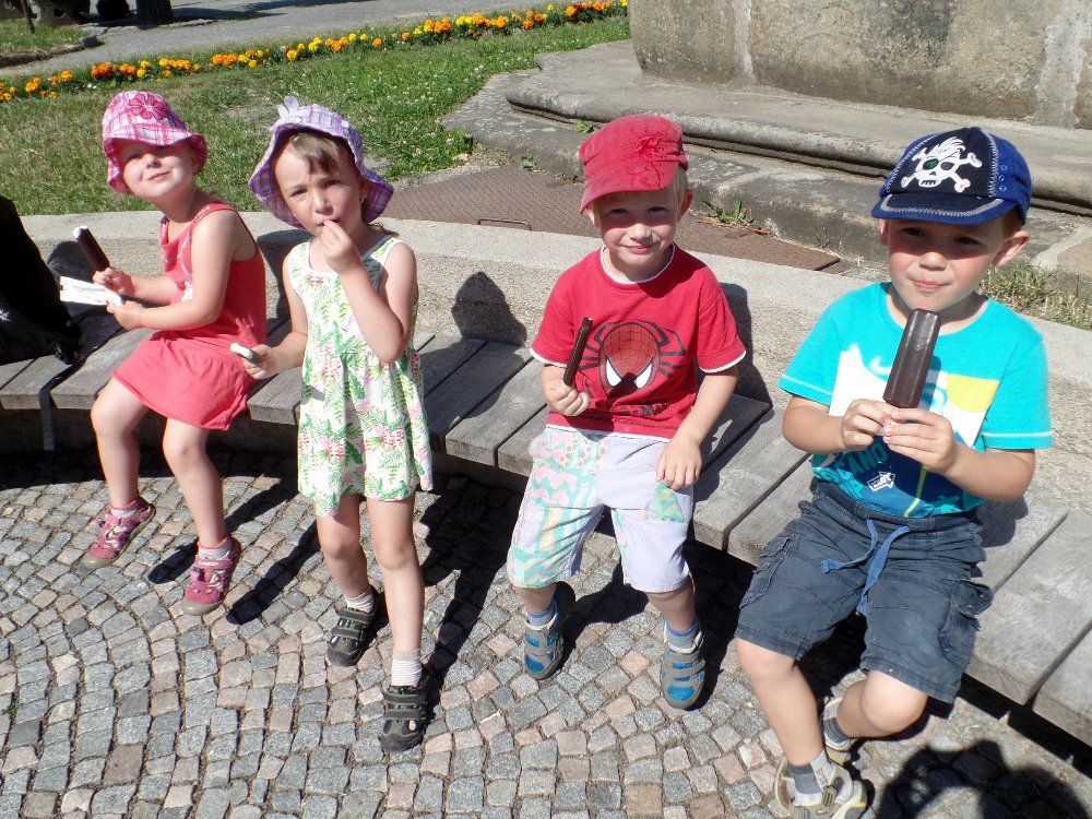 V 15.35 hod ( když mladší kamarádi odešli ze školky domů) jsme vyrazili autobusem do Police nad Metují, kde se děti osvěžily v prameni Julinka a smlsly si nanuka. Poté jsme vyrazili na Radešov, kde jsme měli domluvenou návštěvu u koní. Paní Kolbová nás velmi mile přivítala, provedla nás stájemi, povyprávěla o jednotlivých koních a zodpověděla na zvídavé dětské otázky. S koněm nám také předvedli základní dovednosti a povely, povozili děti na koni, což byl pro mnohé z nich nezapomenutelný zážitek.