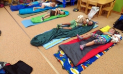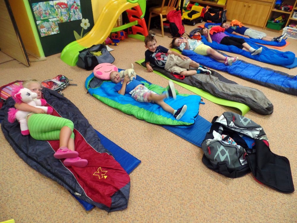 Dne 7. 6. se děti konečně dočkaly spaní ve školce. Odpoledne jsme se rozdělili na dvě skupiny. První skupina se vydala připravit kamarádům šipkovanou, která vedla jižní čtvrtí směrem ke sběrnému dvoru a končila u lesní cesty k Mýtu.