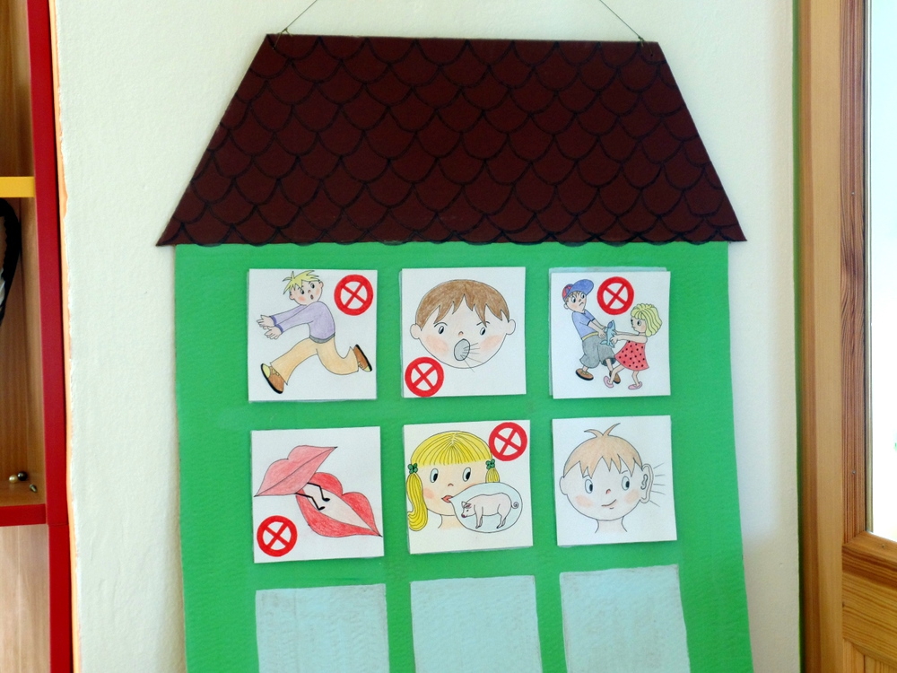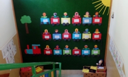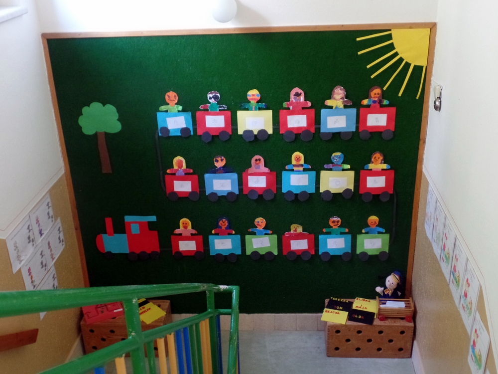 Září jsme věnovali vzájemnému poznávání dětí, jejich jmen a značek, paní učitelek, personálu mateřské a základní školy, prostorám budovy školy a školky.