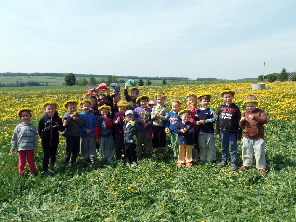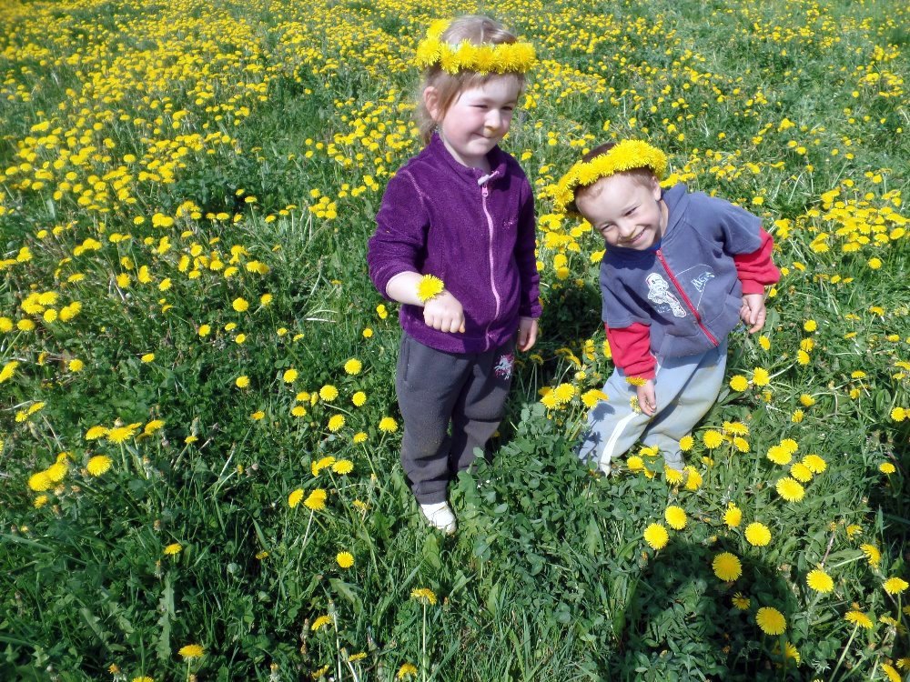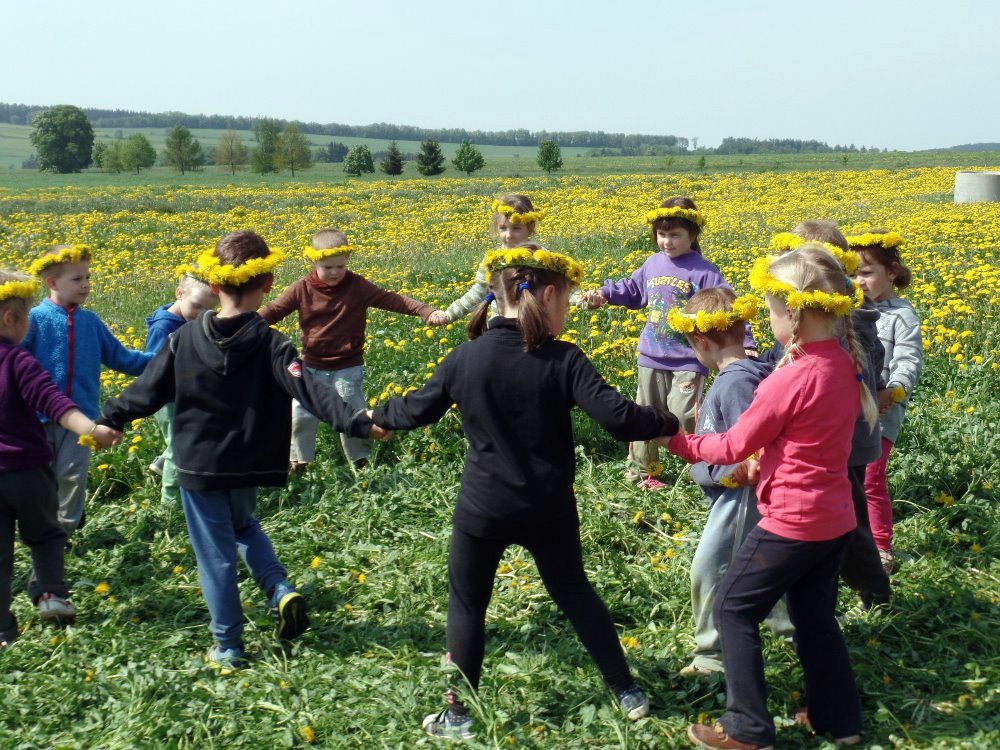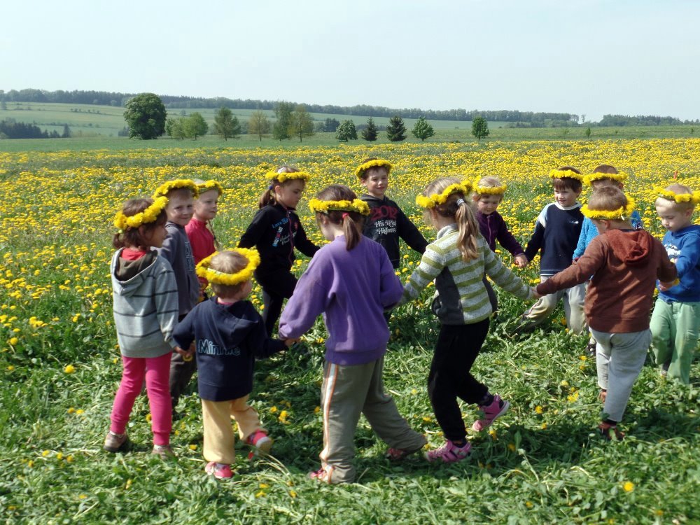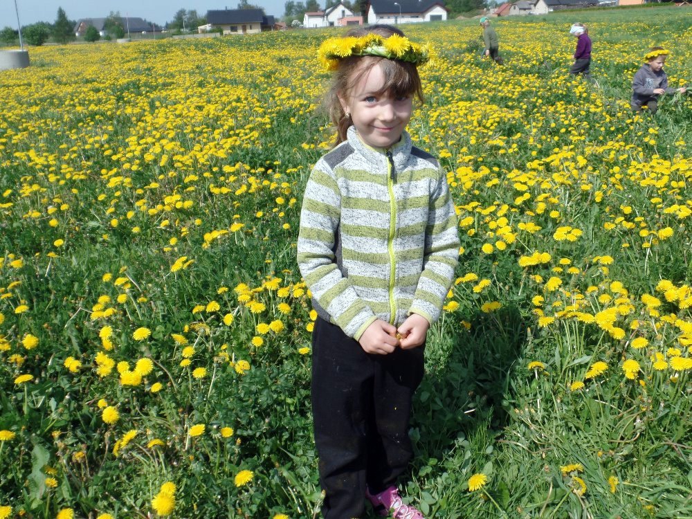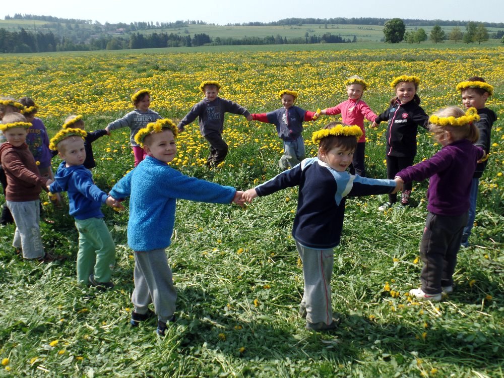 V pátek 4. 5. jsme se vydali na louku plnou pampelišek. Děti si nasbíraly pampelišky a my jsme se pustily do pletení věnečků, vázání prstýnků a náramků.
