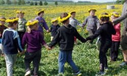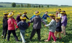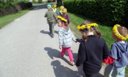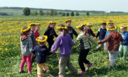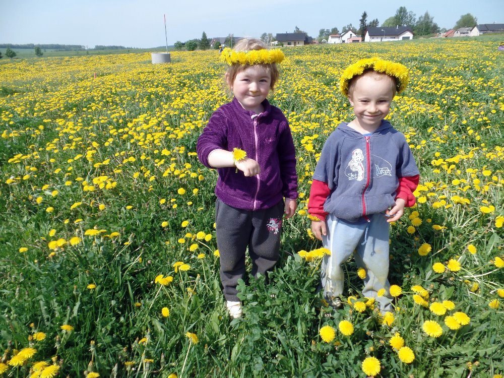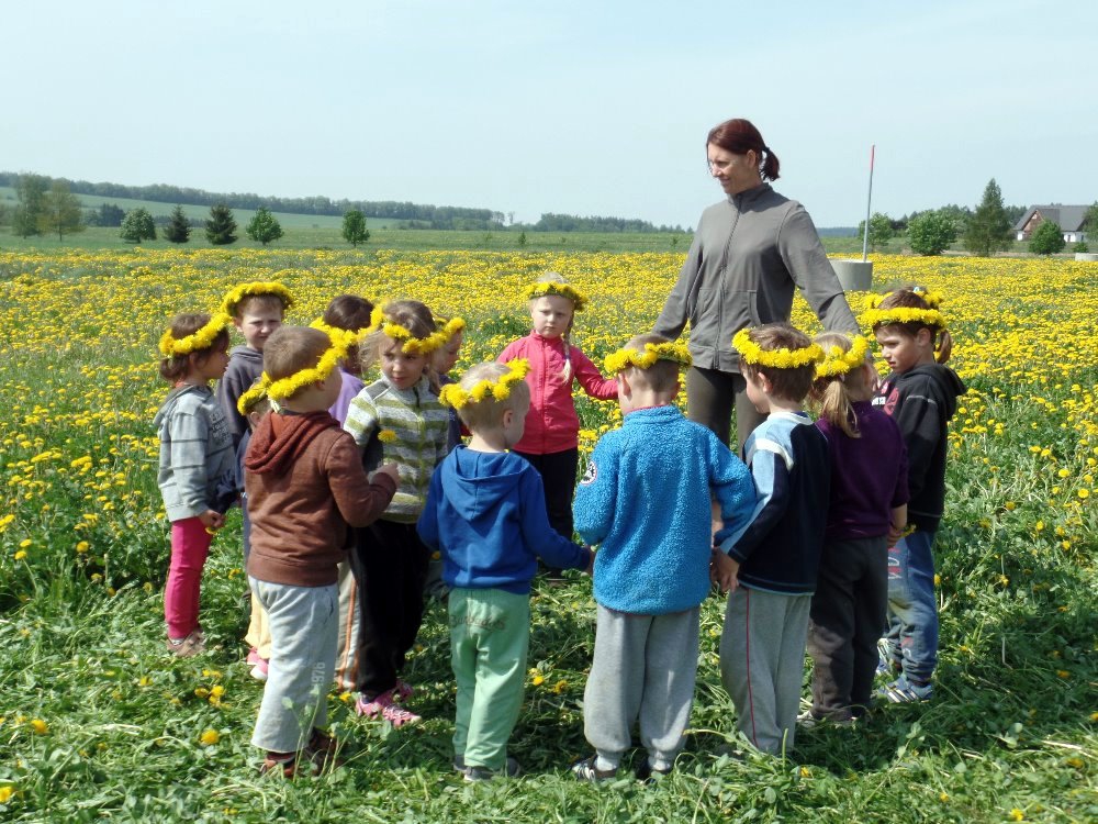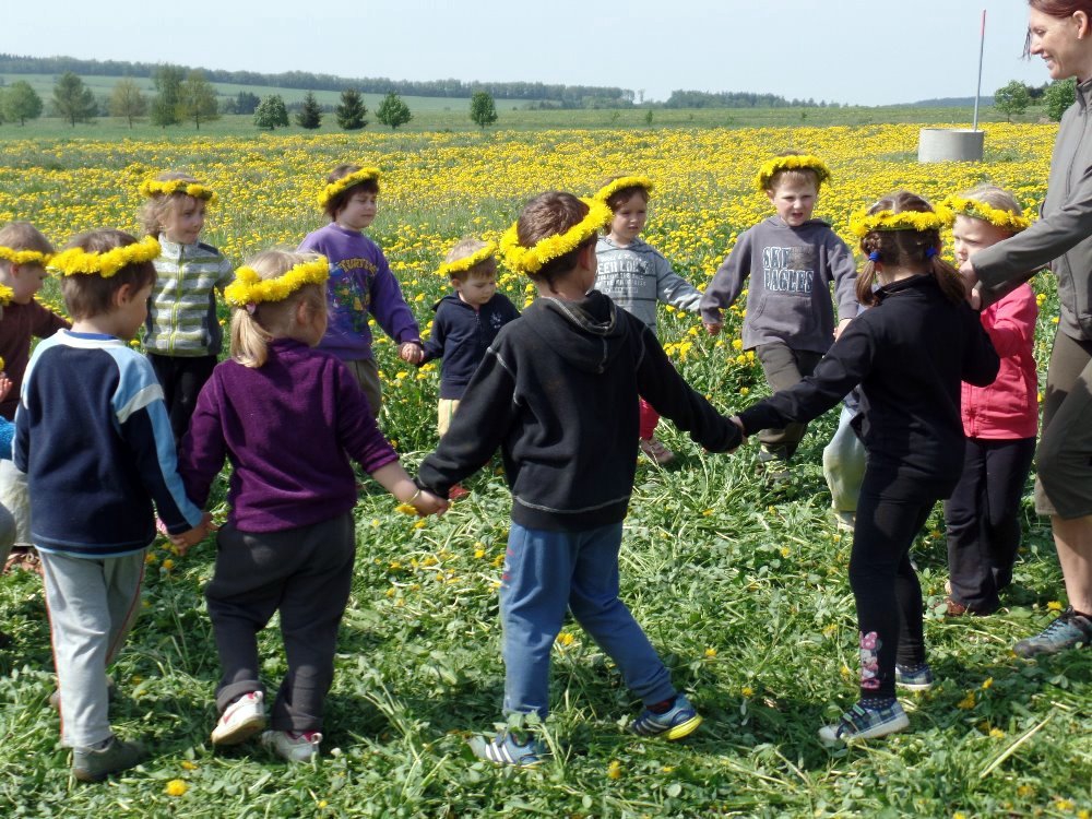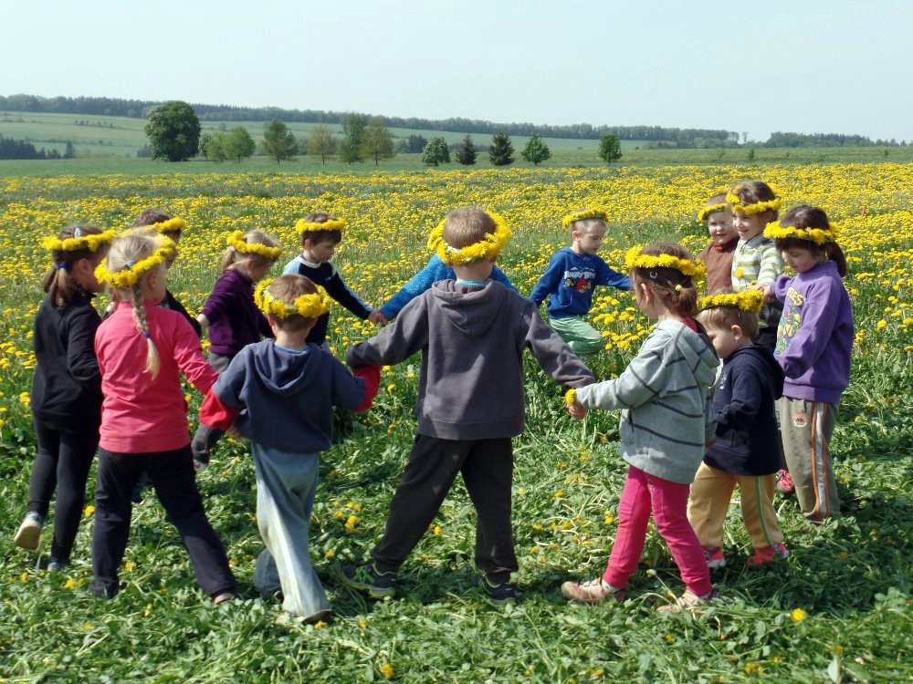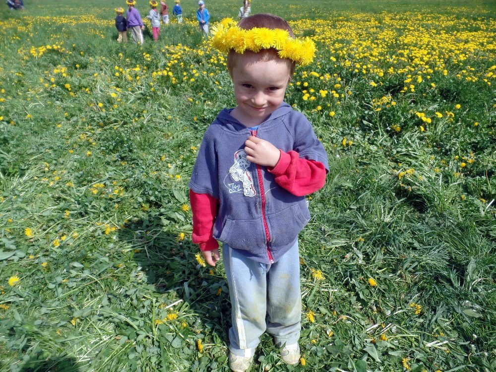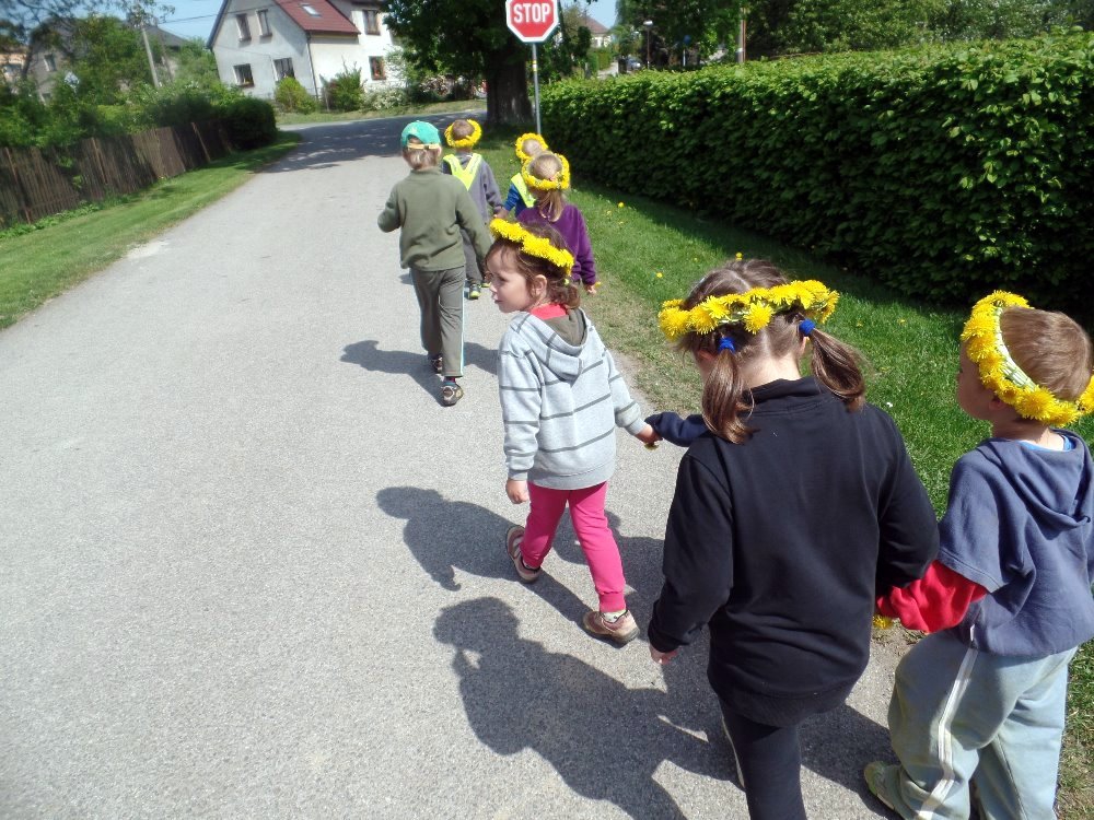 V pátek 4. 5. jsme se vydali na louku plnou pampelišek. Děti si nasbíraly pampelišky a my jsme se pustily do pletení věnečků, vázání prstýnků a náramků.