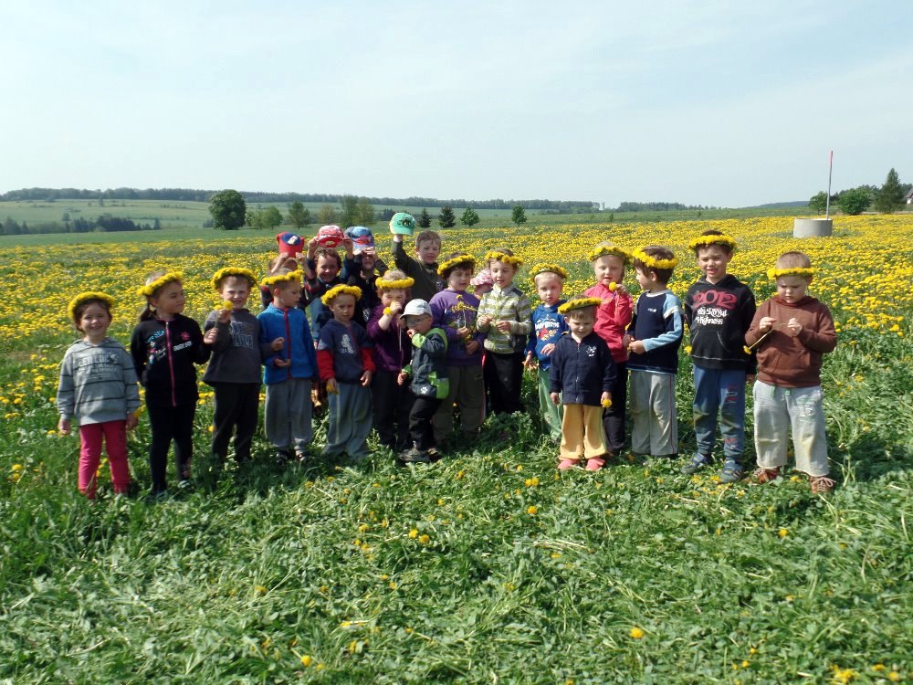Děti byly nadšené, poctivě trhaly, některé hledaly broučky, nebo si hrály hry. Nosíky i ručičky měly žluté od pylu a velmi si to užívaly. Pověděli jsme si o stádiích růstu pampelišek. Počasí bylo příjemné. Ani se nám nechtělo zpět do školky.