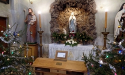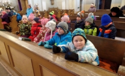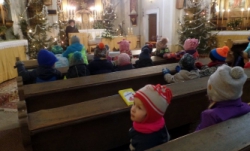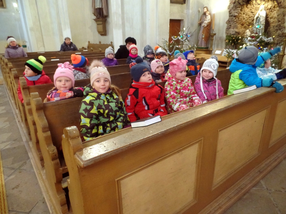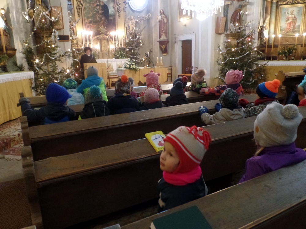 Pí Genertová děti krátce přivítala a představila kostel jako takový. Poté předala slovo našemu novému panu faráři, který dětem vyprávěl příběh O Panně Marii.