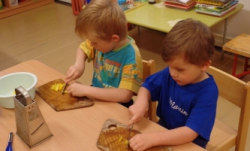 Hlavním programem tohoto měsíce byl podzim. Nové děti se již zadaptovaly, pláč ustupuje a díky tomu bylo možné si hrátky s podzimem a jeho barvami náležitě užít.