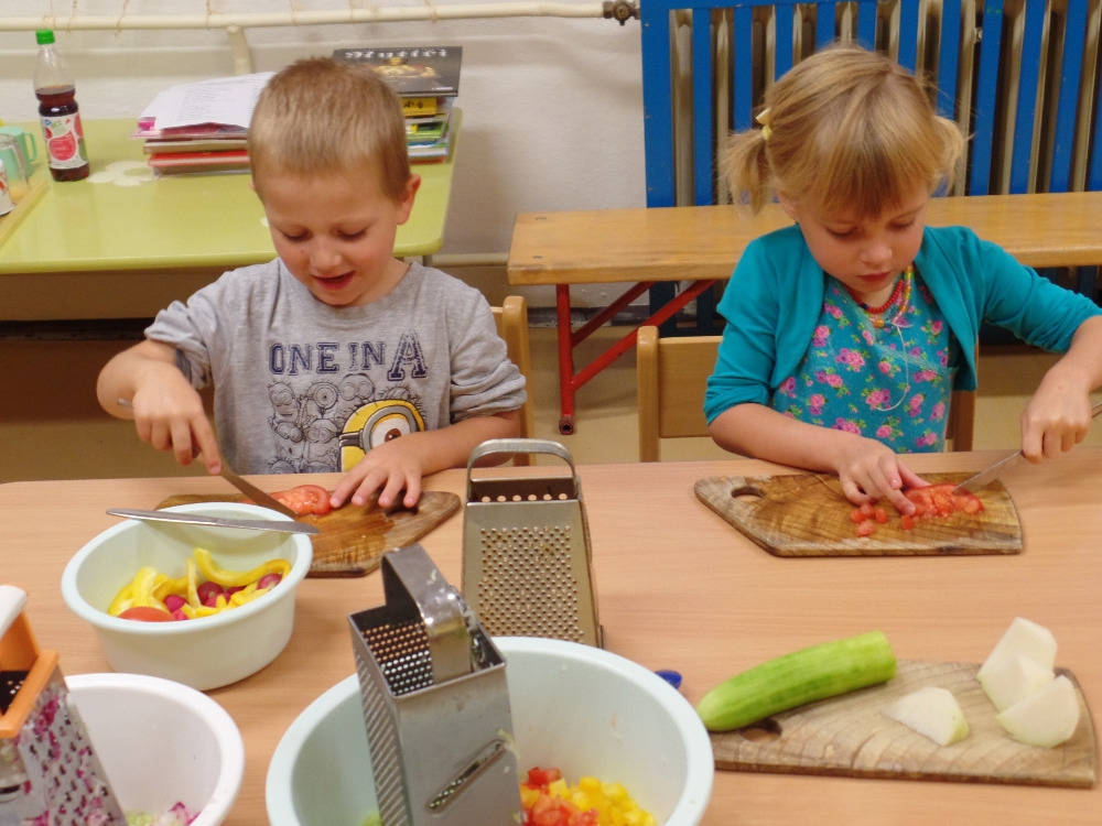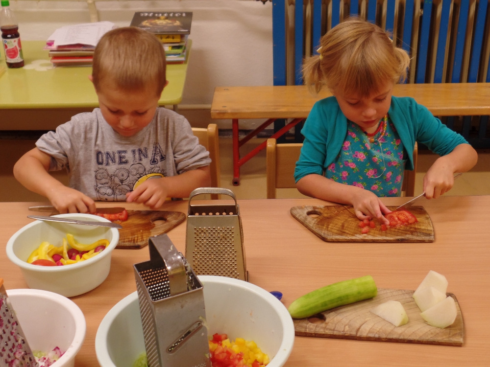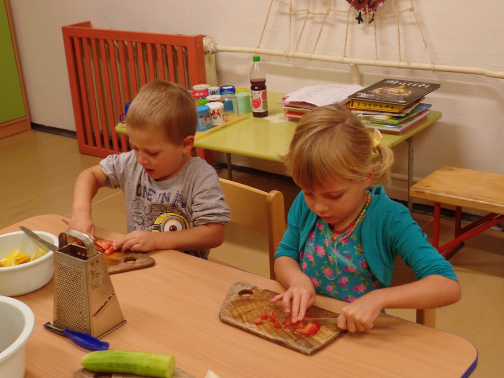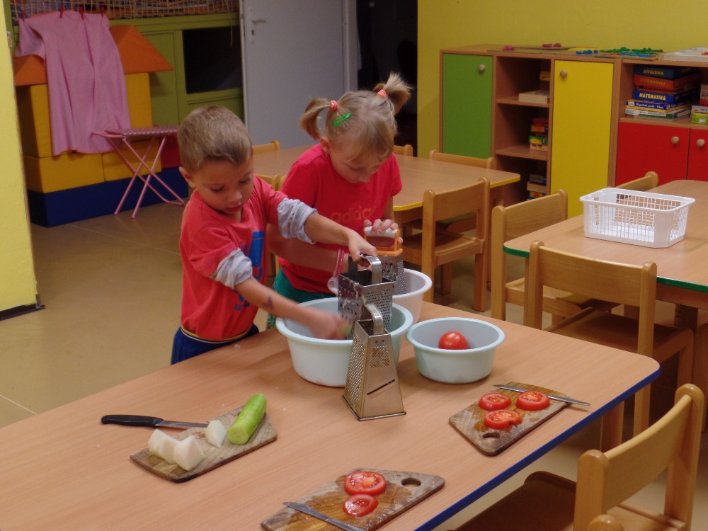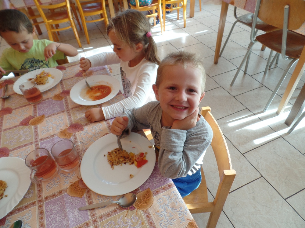 Povídali jsme si hodně o přírodě, stromech, ovoci a zelenině, přírodninách, ale také o zvířátkách. Děti projevily značné znalosti ze všech oblastí, činnosti je bavily, vznikly krásné výtvarné a pracovní výtvory. Vydlabali jsme 2 dýně, které nám poskytli rodiče. Každé ráno jsme je rozsvítili a dýňáčci vítaly děti při příchodu do MŠ. Ze zeleniny jsme udělali salát, který obohatil náš jídelníček. Vyráběli jsme draky a plánovali drakiádu, která musela být z důvodu nepřízně počasí odložena na neurčito.
