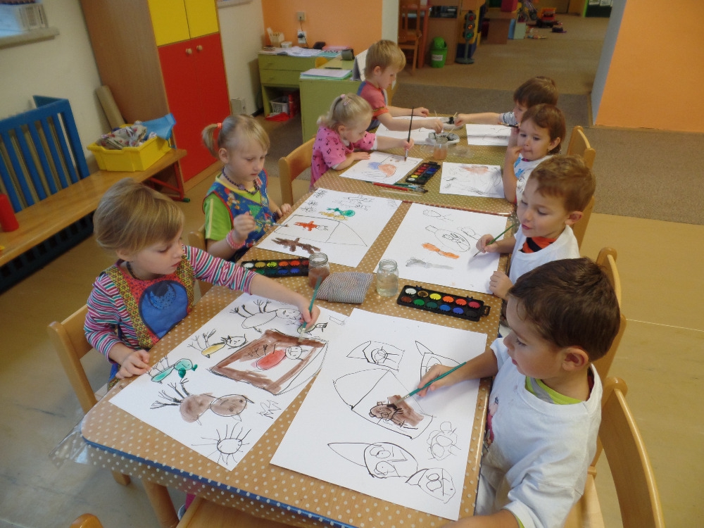Povídali jsme si hodně o přírodě, stromech, ovoci a zelenině, přírodninách, ale také o zvířátkách. Děti projevily značné znalosti ze všech oblastí, činnosti je bavily, vznikly krásné výtvarné a pracovní výtvory. Vydlabali jsme 2 dýně, které nám poskytli rodiče. Každé ráno jsme je rozsvítili a dýňáčci vítaly děti při příchodu do MŠ. Ze zeleniny jsme udělali salát, který obohatil náš jídelníček. Vyráběli jsme draky a plánovali drakiádu, která musela být z důvodu nepřízně počasí odložena na neurčito.