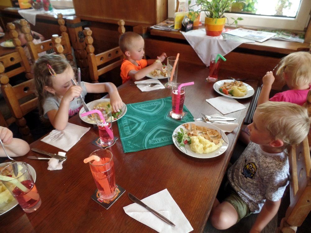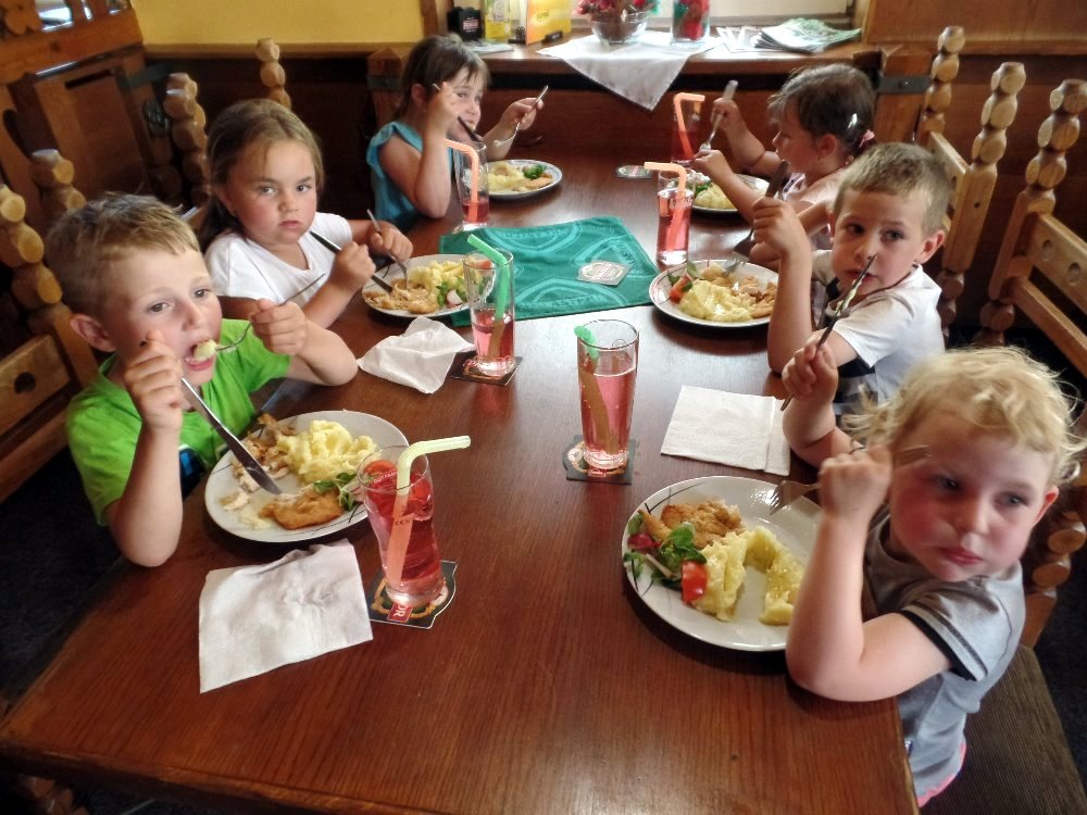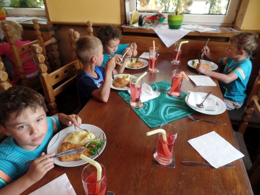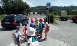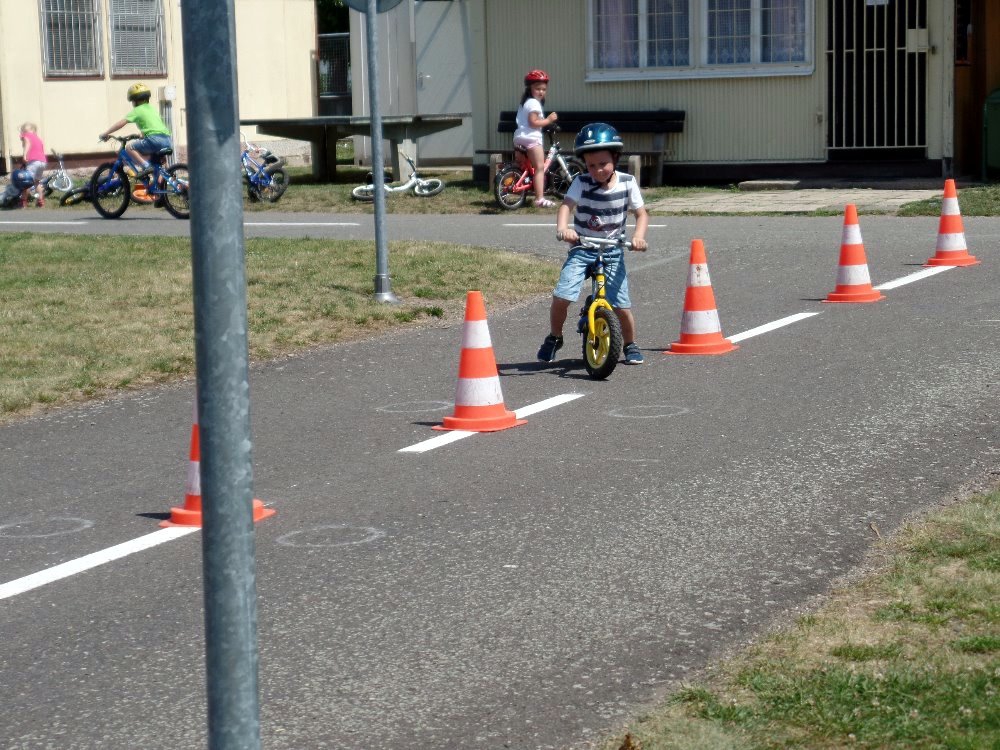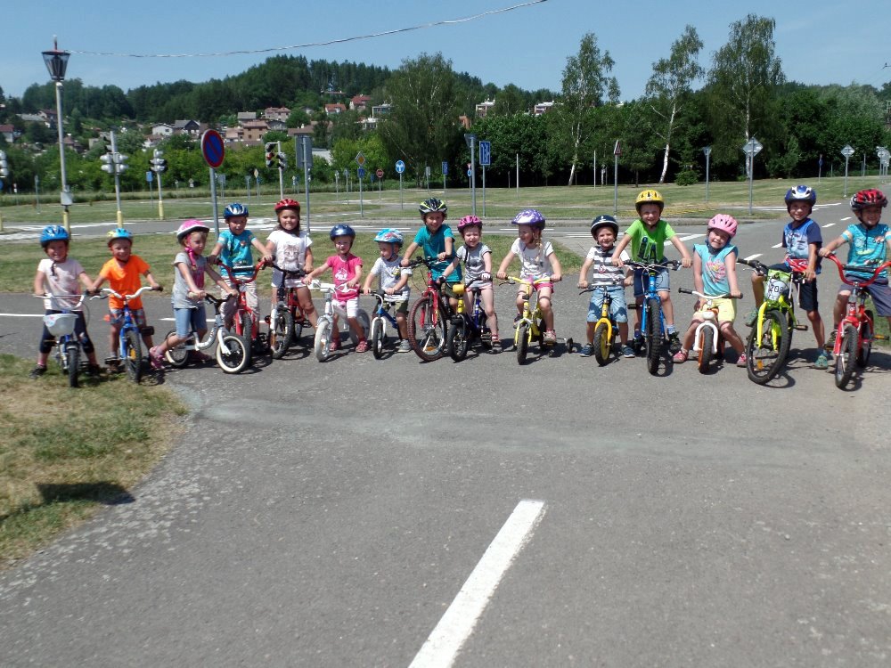 Děti byly nejdříve seznámeny s bezpečností při jízdě na hřišti. Ale nejvíce se těšily, až si nasadí helmy a vyrazí na cestu s přechody, semafory a v závěru i jízdou kolem kuželů. Zbyl nám čas i na průlezky a houpačky. Dalším zpestřením byla návštěva restaurace a dobrý oběd. Z Bělovsi jsme odjeli opět vláčkem zpět na nádraží, kde už na nás čekali rodiče. Výlet se všem moc líbil.