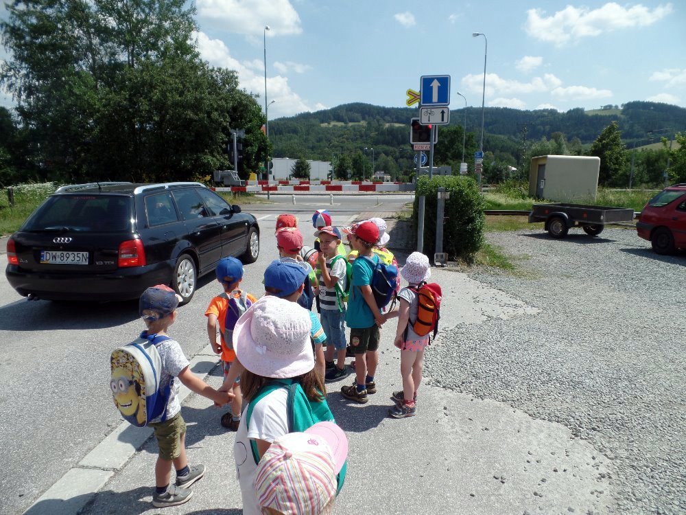 Výlet jsme naplánovali na čtvrtek 31. 5. Počasí nám přálo, vláčkem jsme odjeli do Náchoda a potom jsme lesem došli do Bělovsi na dopravní hřiště.