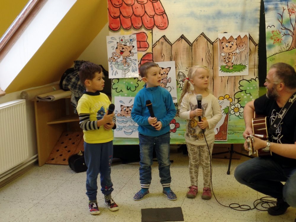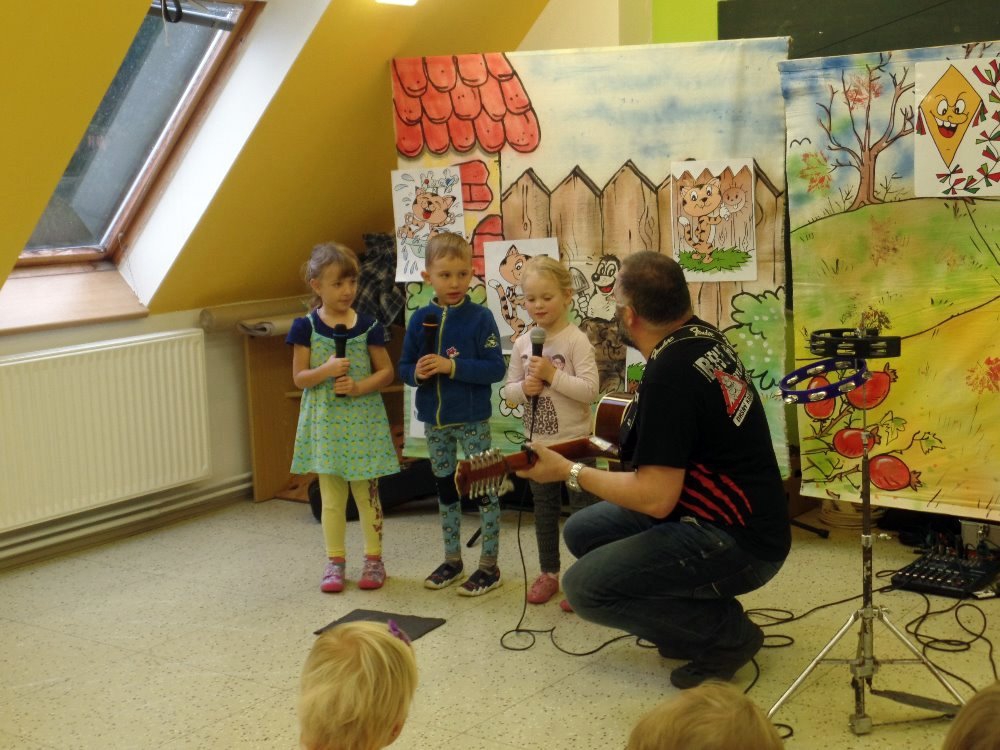 Dne 28. 11. 2017 nás navštívil pan Zábranský s hudebním pořadem Toulavá kytara. Děti si vyzkoušely zpívání do mikrofonu, zazpívaly si známé písničky s pohybem.