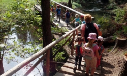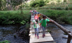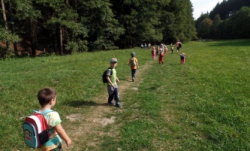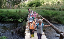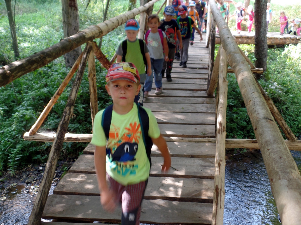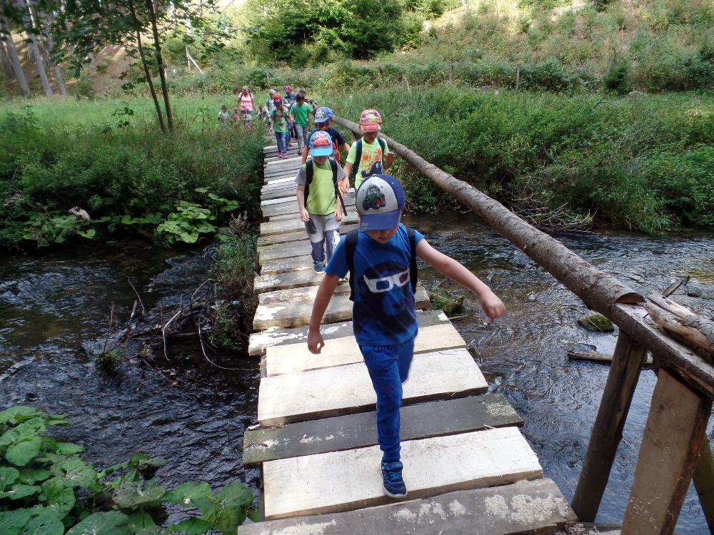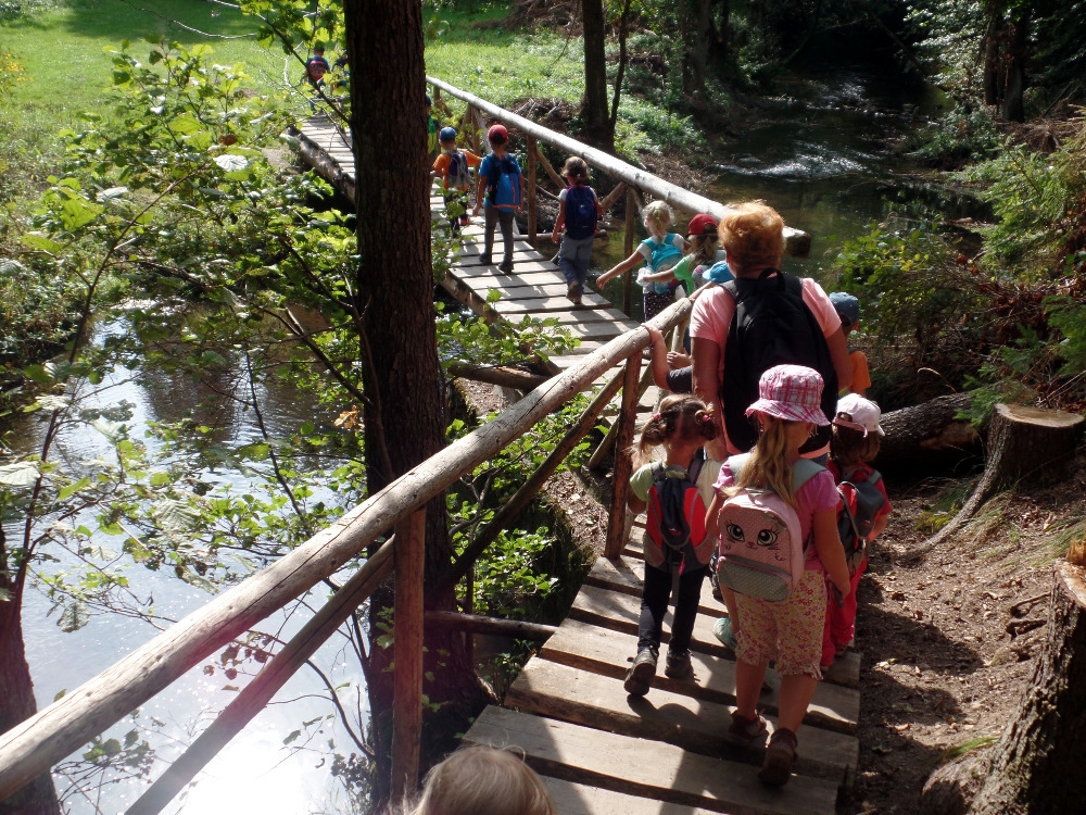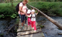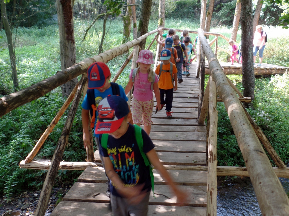 Cestou jsme si udělali zastávku na svačinku, kterou nám připravila paní kuchařka. Zvířátka v oboře se nám přišla ukázat až k plotu, podívaná na ně byla velkolepá. Nechala se dětmi nerušeně krmit kaštany, listy a travou a tak jsme u obory vydrželi dosti dlouho.Pak jsme pokračovali přes louky do Maršova, kde jsme pro změnu obdivovali domácí zvířectvo. Maršovským údolím jsme prošli až k autobusové zastávce ve Velkých Petrovicích. Cesta vede lesem podél řeky Metuje, je příjemná a pro děti zajímavá. Naše děti hnala vpřed motivace čtyř dřevěných lávek přes řeku. Užili jsme si spoustu chvil pozorováním přírodních krás a zajímavostí. Čas, který jsme věnovali zvířátkům nám ke konci cesty chyběl a tak jsme si museli trochu přispíšit, abychom stihli autobus.