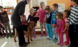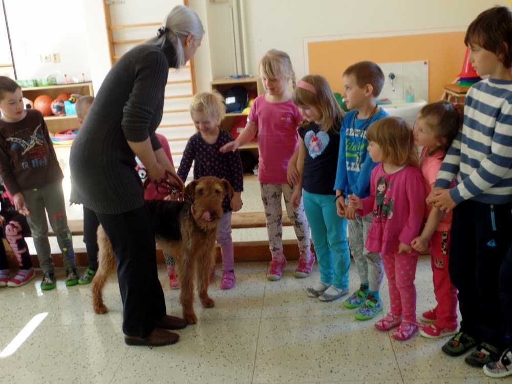 V úterý 7. května nás navštívila v MŠ paní Milada Žváčková se svými dvěma cvičenými pejsky. Měla se psy připravený program, kde se snažila dětem vysvětlit určité chování psů, nahlédnout do psího myšlení a chápání.