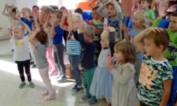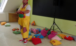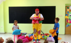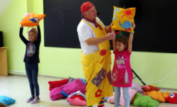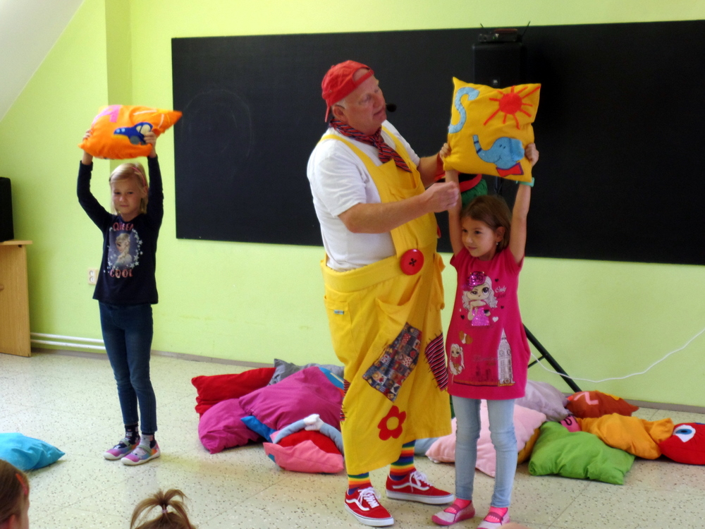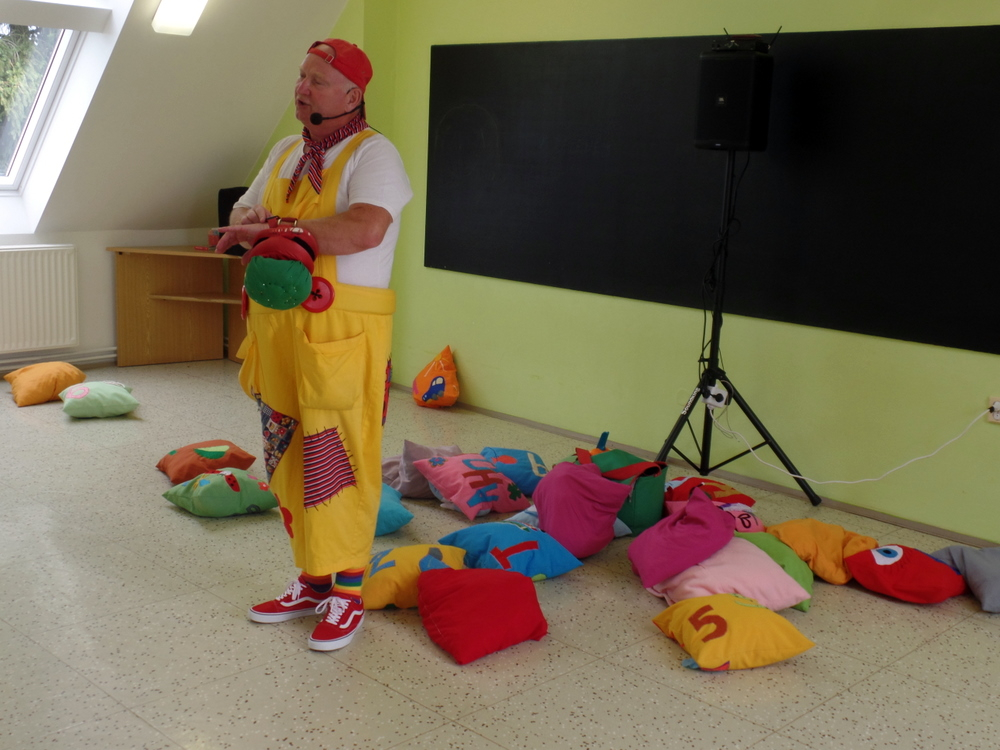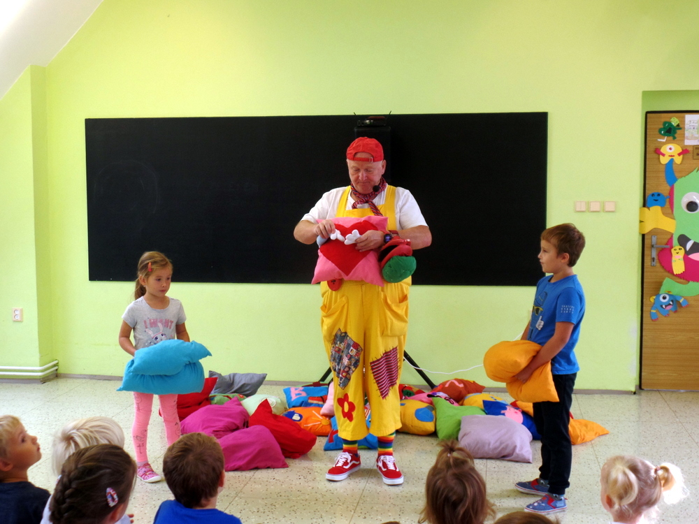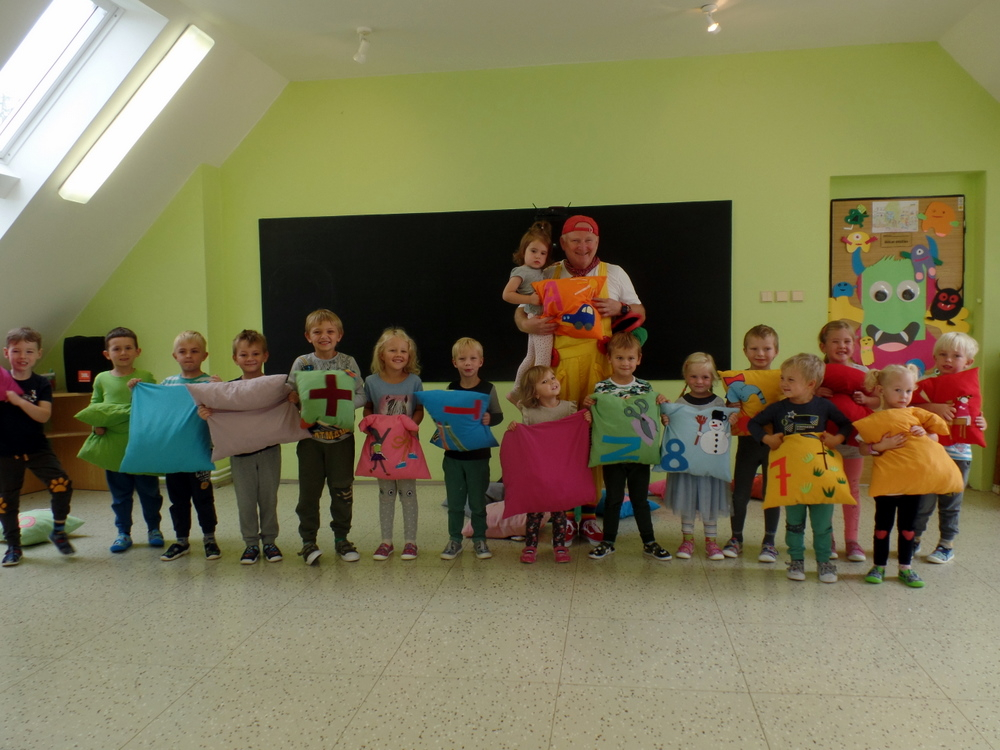 Přijel k nám zpěvák Honza Krejčík. Písničkami a polštářky pobavil nás, školní děti i děti z petrovické školky.