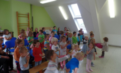 Naučili jsme se písničky „Šla Nanynka do zelí“, „Prší, prší“ a „Jedna, dvě, tři, čtyři pět“