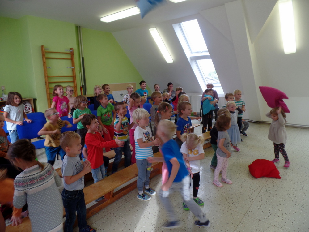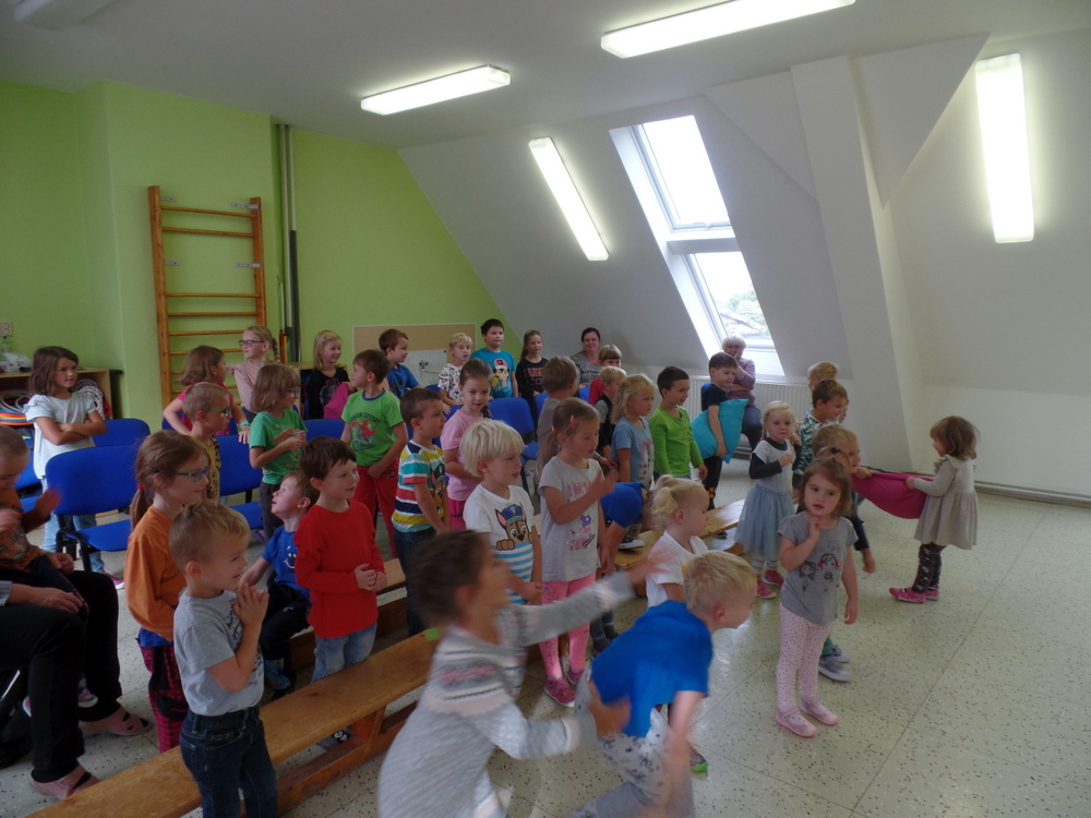 V měsíci září jsme přivítali v mateřské škole nové malé kamarády a snažili se jim pomoci s postupnou adaptací. Děti se učily vzájemné ohleduplnosti a toleranci. Poznávaly se pomocí různých her, poznávaly jména, značky, hledaly si k sobě kamarády na hru.