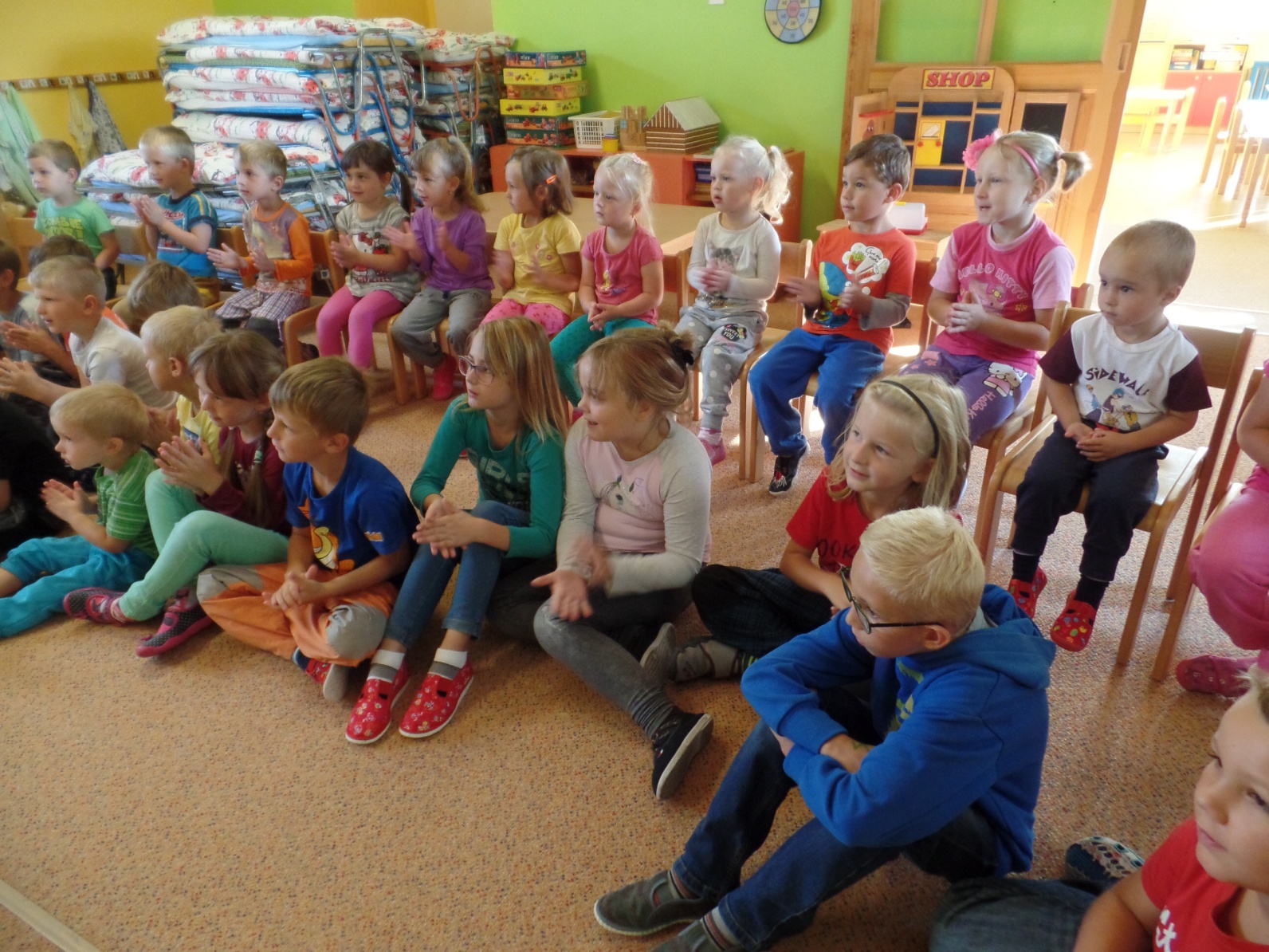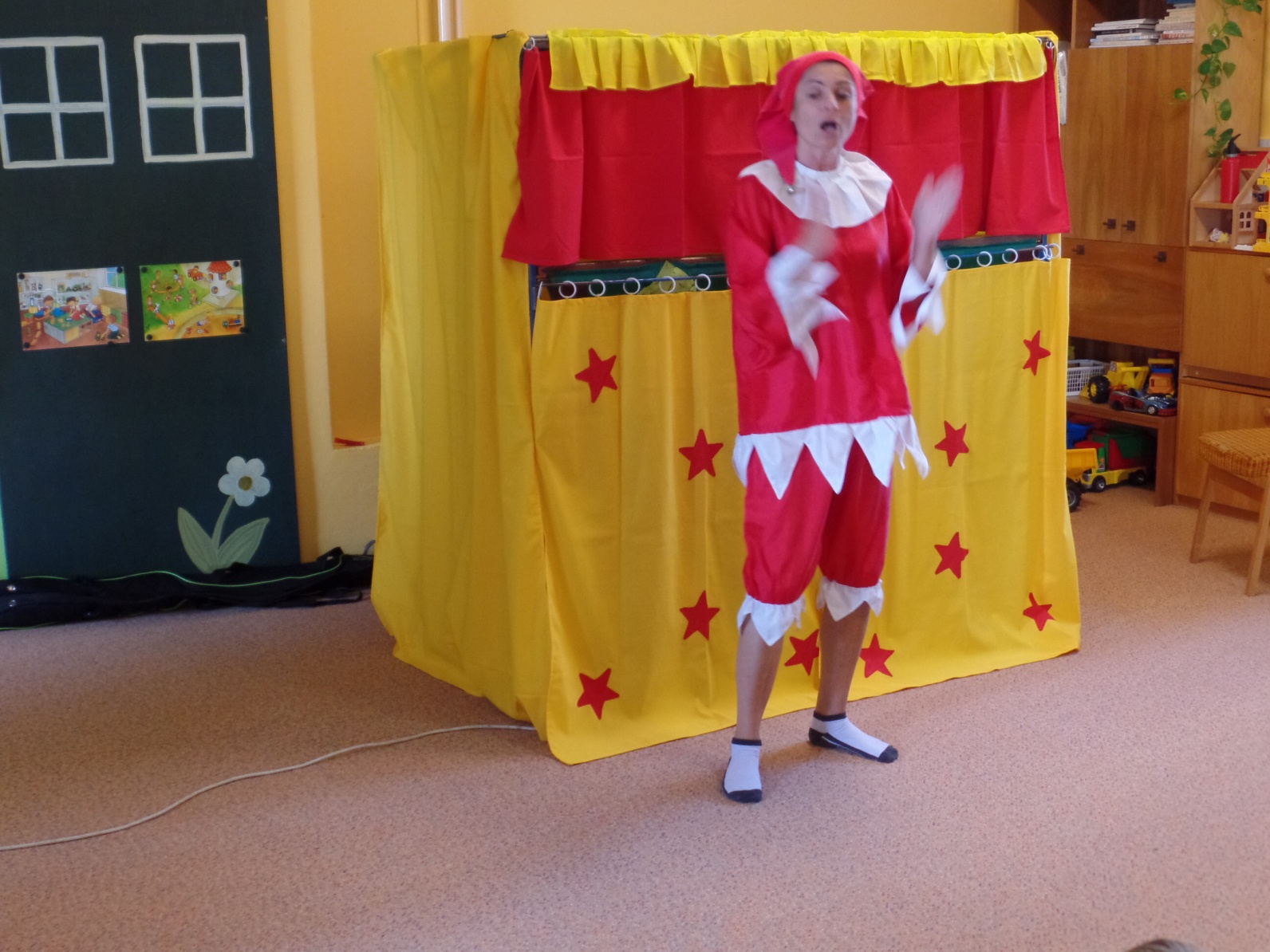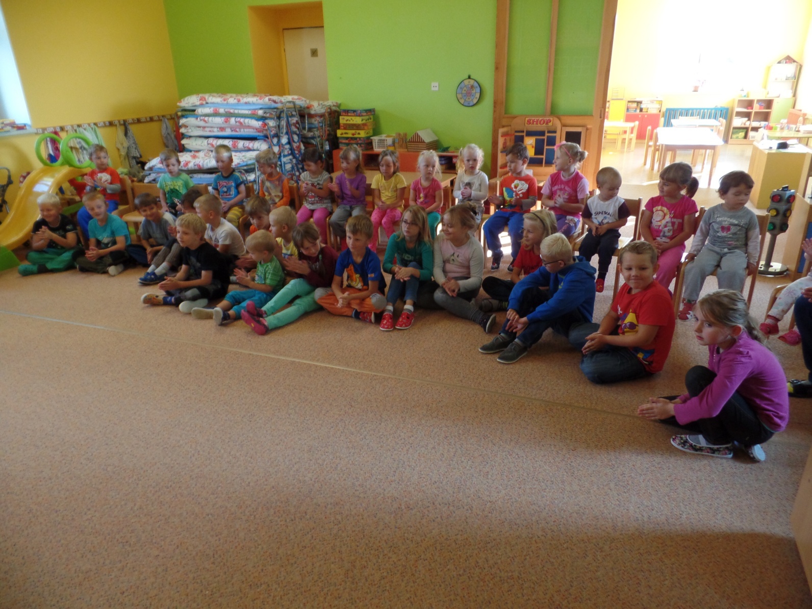 Zpestřením pro děti byla dne     .9. pohádka , kterou nám přijelo zahrát divadlo „Úsměv ze Dvora Králové nad Labem“. Pohádku o slušném i neslušném chování, férových kamarádských vztazích, nejen mezi dětmi, ale i zvířátky, nám uvedl kašpárek Nazdárek  svou písničkou. Děti, které docházejí do MŠ již delší dobu Nazdárka i jeho úvodní písničku „První, druhý, třetí“, dobře znají a s nadšením jej vždy vítají. Pohádka byla proložena několika známými dětskými písničkami, kde děti dostaly prostor pro rytmizaci a zpěv. Maňáskové postavičky nás přesvědčily o tom, že kamarádství není samozřejmost, ale musíme se o něj svým chováním zasloužit. Správný kluk a správná holka se hezky chová ke svým hračkám, dokáže se omluvit, i odpustit.
