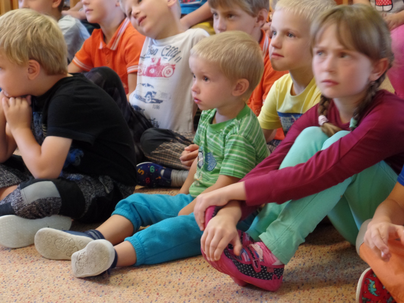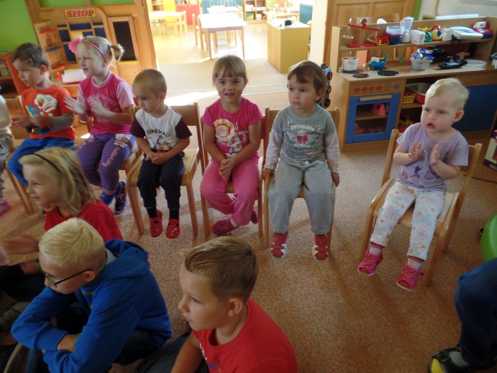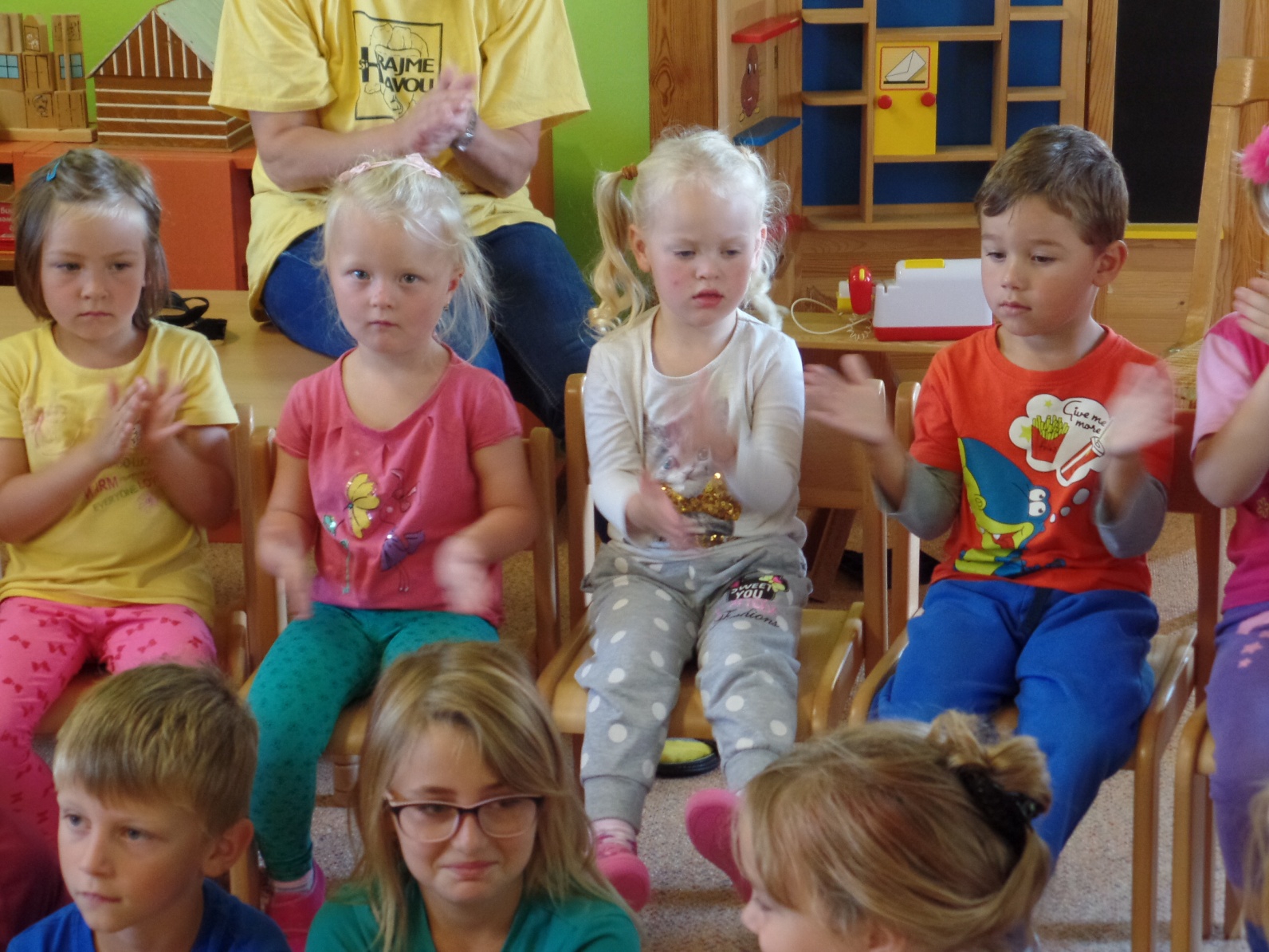 Září jsme v MŠ prožili ve znamení adaptace. Malým dětem jsme se snažili společně poskytnout vstřícné a příjemné prostředí pro první krůčky do samostatného života bez rodičů. Starší děti malým dětem ochotně pomáhají v sebeobsluze, snaží se je zapojit do svých her a trpělivě je vést ruku v ruce na vycházkách po obci.