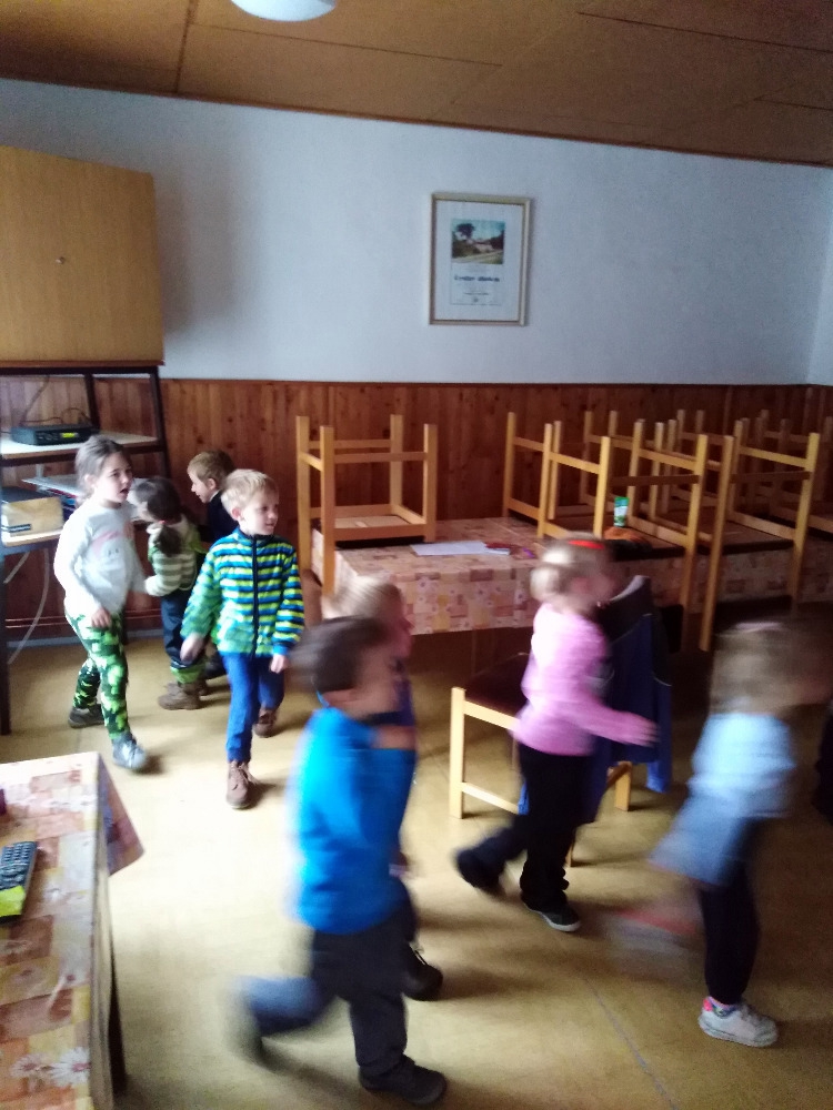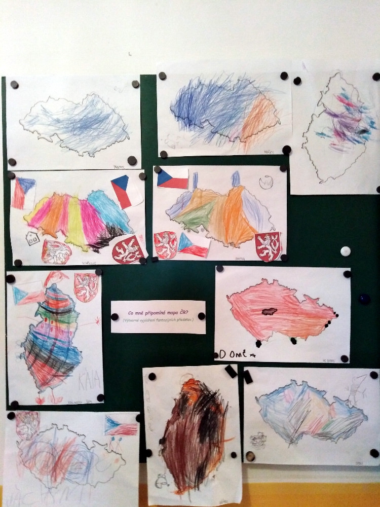 Poslechly si hymnu a vědí, jak se při ní chovat. Pracovali jsme s mapou ČR. Představovali jsme si, co nám připomíná a prostorově jsme ji vyjadřovali. Předškoláci kreslili pana prezidenta. Zpívali jsme a tančili ke Dni stromů. Objali jsme památnou Berkovu lípu, vyráběli jsme rekvizity k dramatizaci básničky o lípě. Navštívili jsme Obecní úřad v České Metuji.