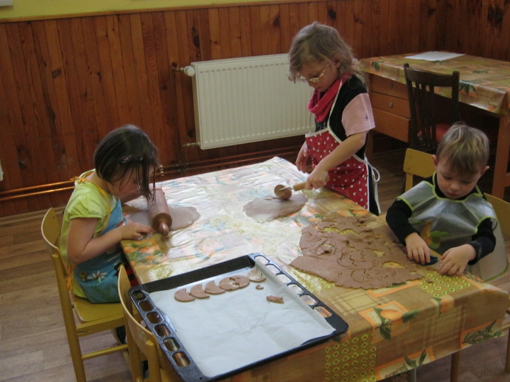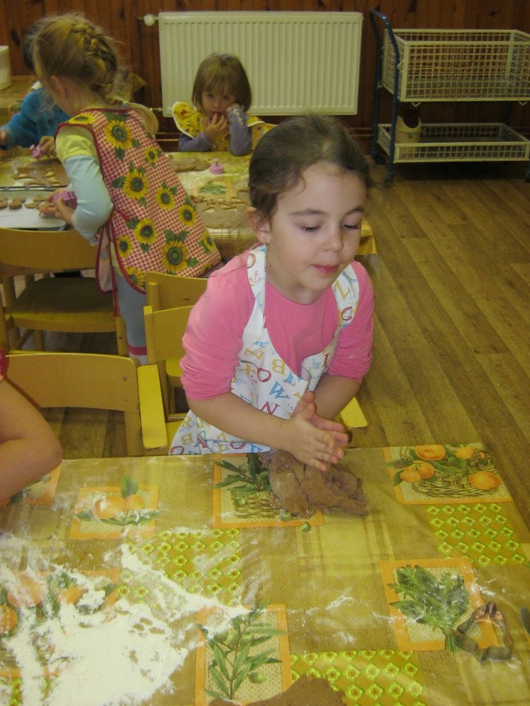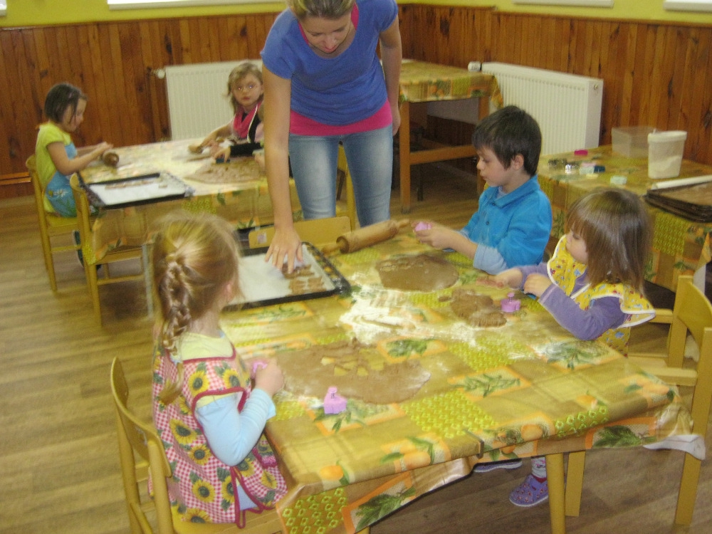 Chystáme se na vánoční besídku, zpíváme vánoční koledy a zimní písničky, učíme se básničky a tanečky. Vyrobili jsme plno hezkých dekorací. Budeme je prodávat na vánočním jarmarku. Pekli jsme perníčky, které postupně zdobíme.