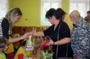 Na Škaredou středu proběhl v naší školce velikonoční jarmark. Uspořádali jsme ho v jídelně jako akci pro obec. Děti nejprve předvedly krátké pásmo jarních a velikonočních koled, básniček a písní.