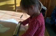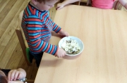 Do školky přijela paní Šárka Vávrová z broumovského kláštera s enviromentálním programem "Příběh obilí". Prožitkové učení děti velmi bavilo. Na mlýncích si umlely mouku, vločky a domů si odnesly svoje udělané musli.
