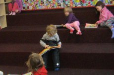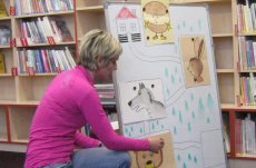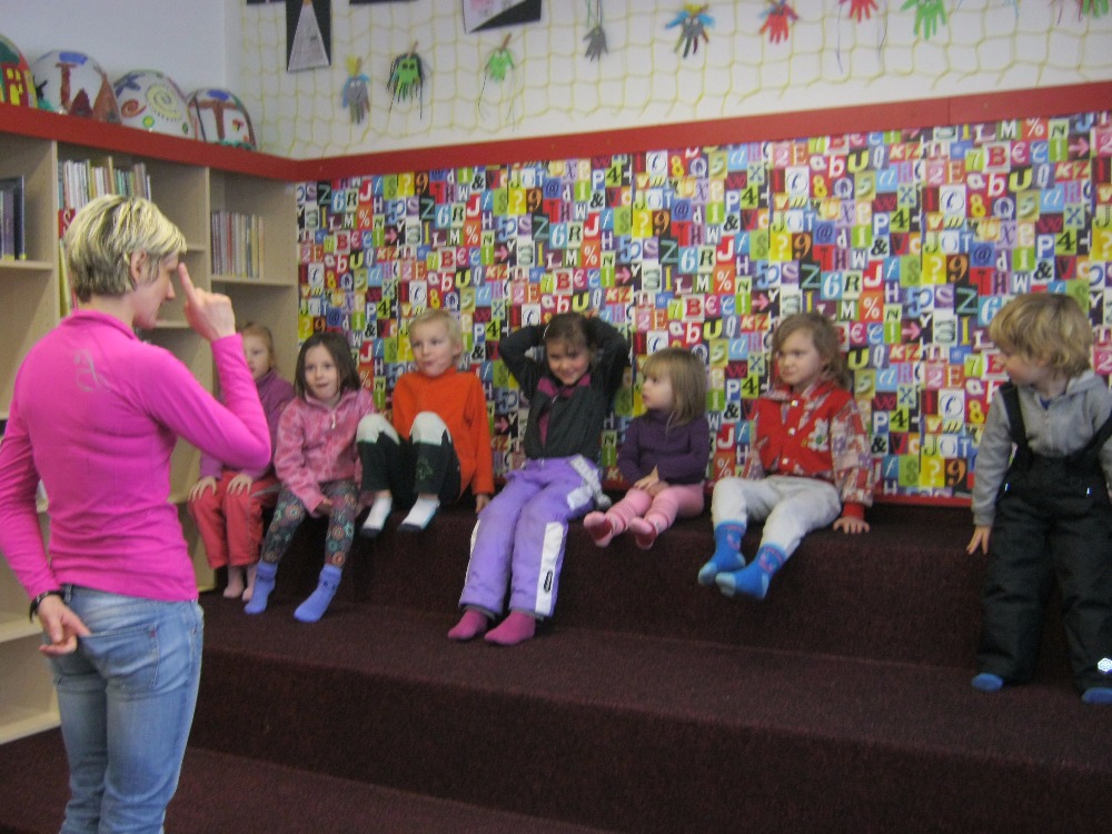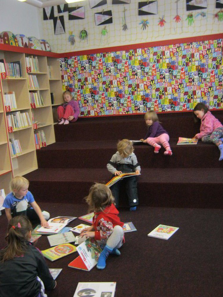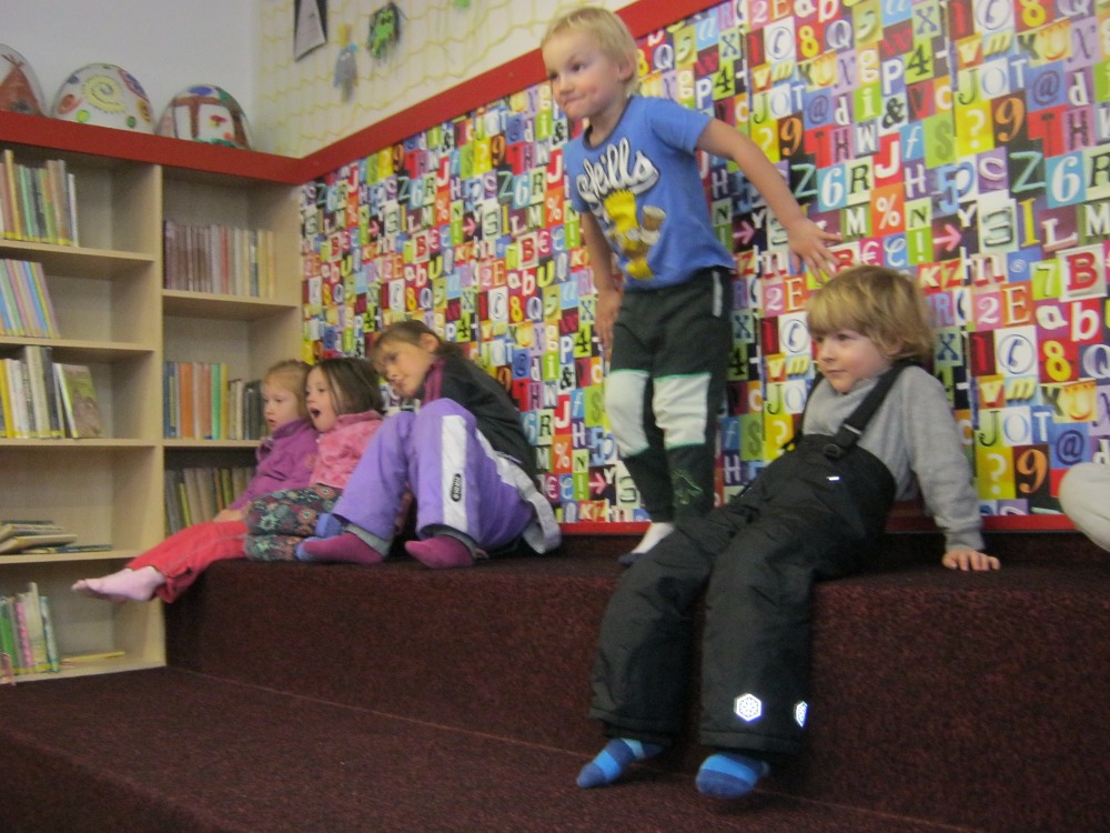 Mezitím nám pěkně vyhládlo. Už jsme se těšili na svačinu, kterou jsme si dali v teple polické knihovny. Tam nás čekal program připravený paní knihovnicí. Prošli jsme celou knihovnu, prohlédli si knížky a časopisy. Soutěžili jsme v hádání říkadel a písniček podle obrázků, v doplňování dvojic pohádkových postav. Paní knihovnice nám zahrála pohádku O koblížkovi a celý program jsme zakončili společnou hrou s hračkami, které mají v knihovně k dispozici.