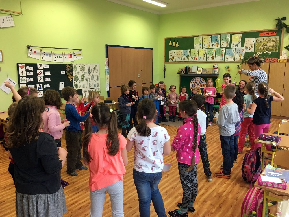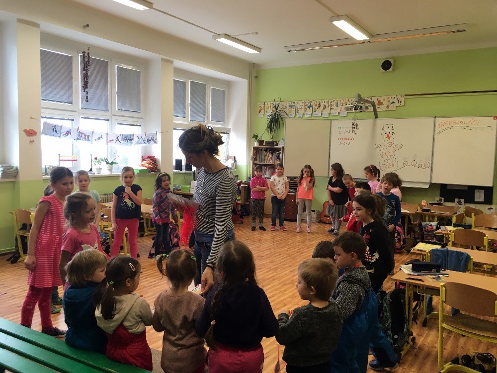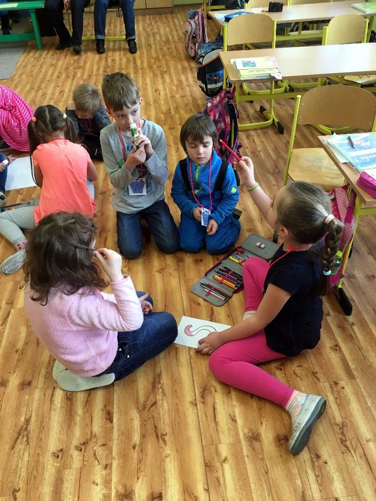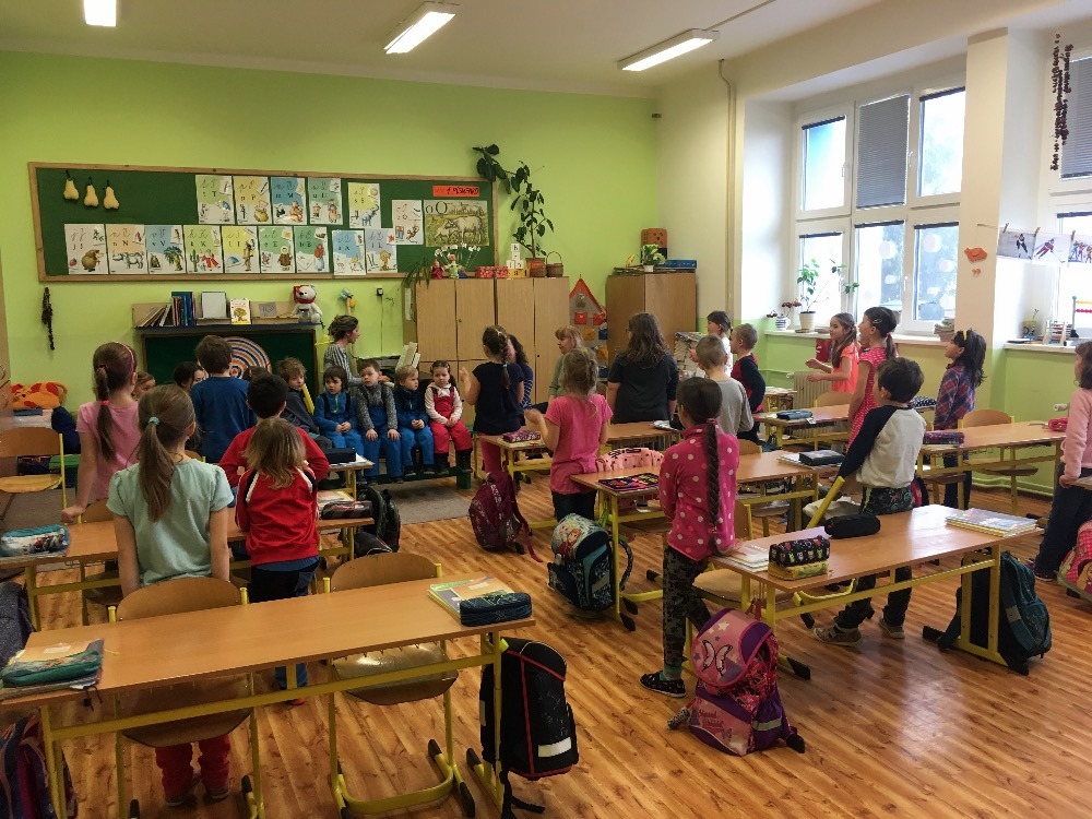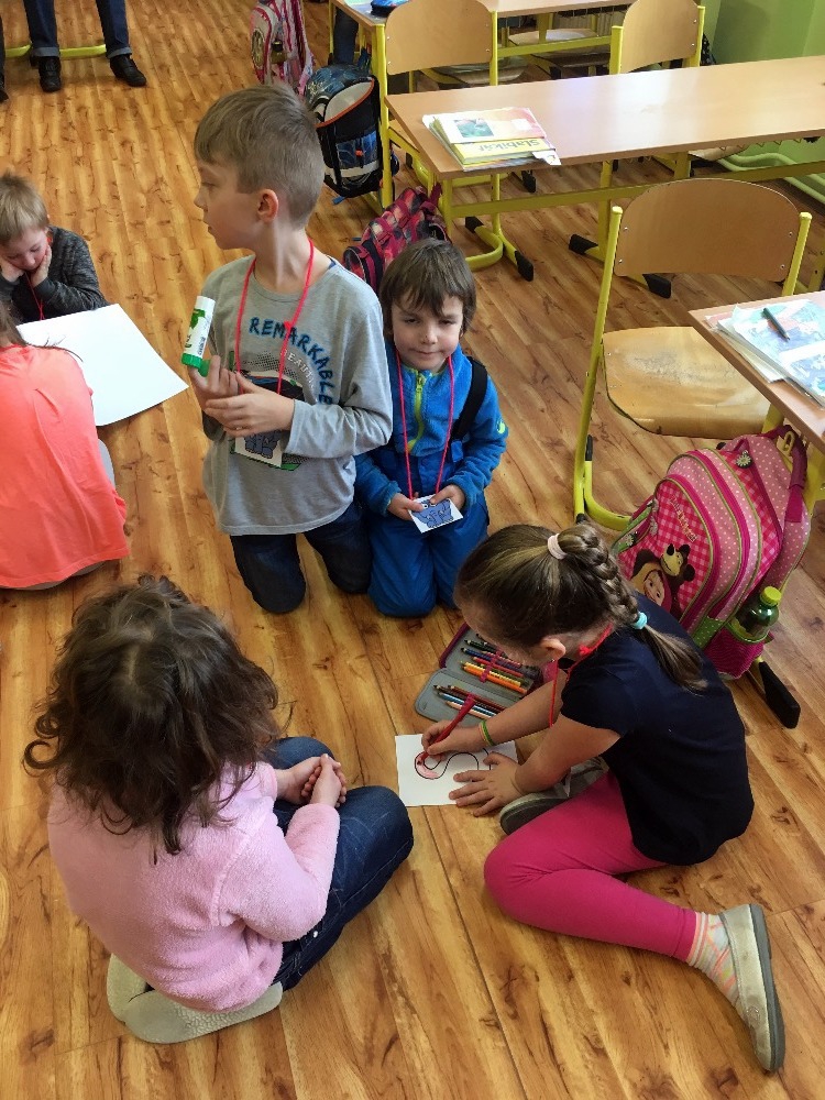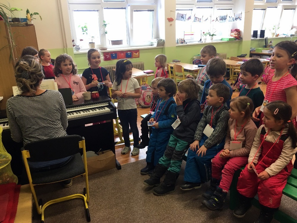 Ukázali nám, jak už se naučili číst a počítat. Zazpívali nám. Společně jsme hledali písmenko a skládali obrázek zvířátka. Na památku jsme dostali drobné dárečky. Děkujeme.