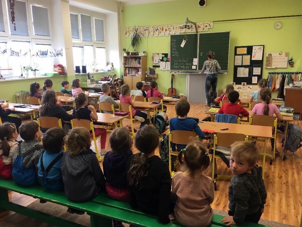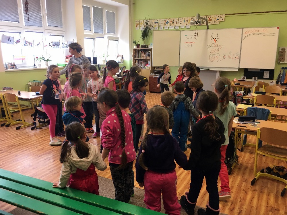 Také nás to jednou čeká - přechod ze školky do školy. Naší spádovou školou je ZŠ v Polici nad Metují. V 1. třídě nás přivítali malí školáčci s paní učitelkou Lenkou Meierovou.