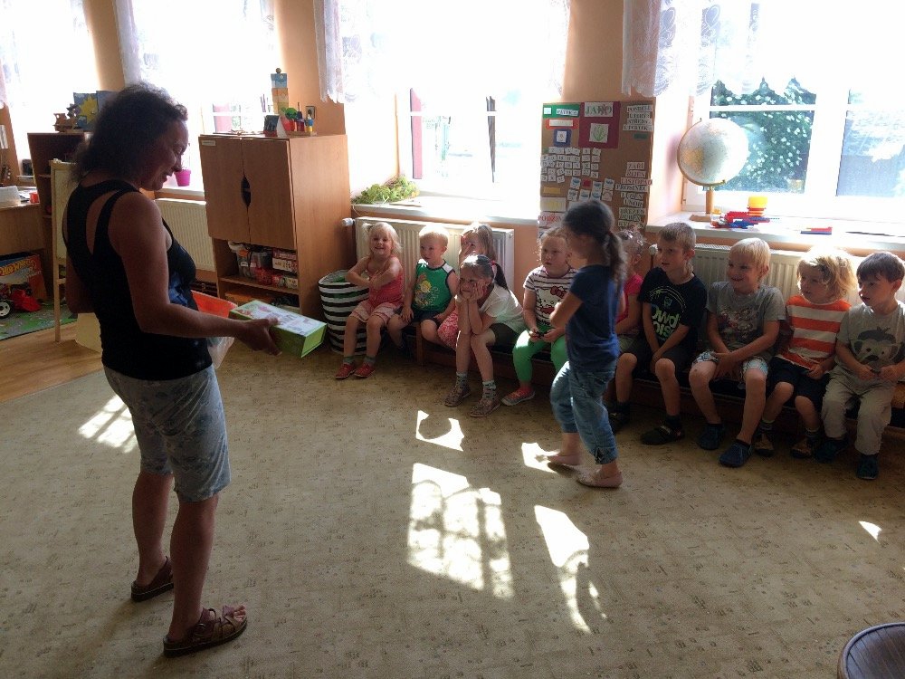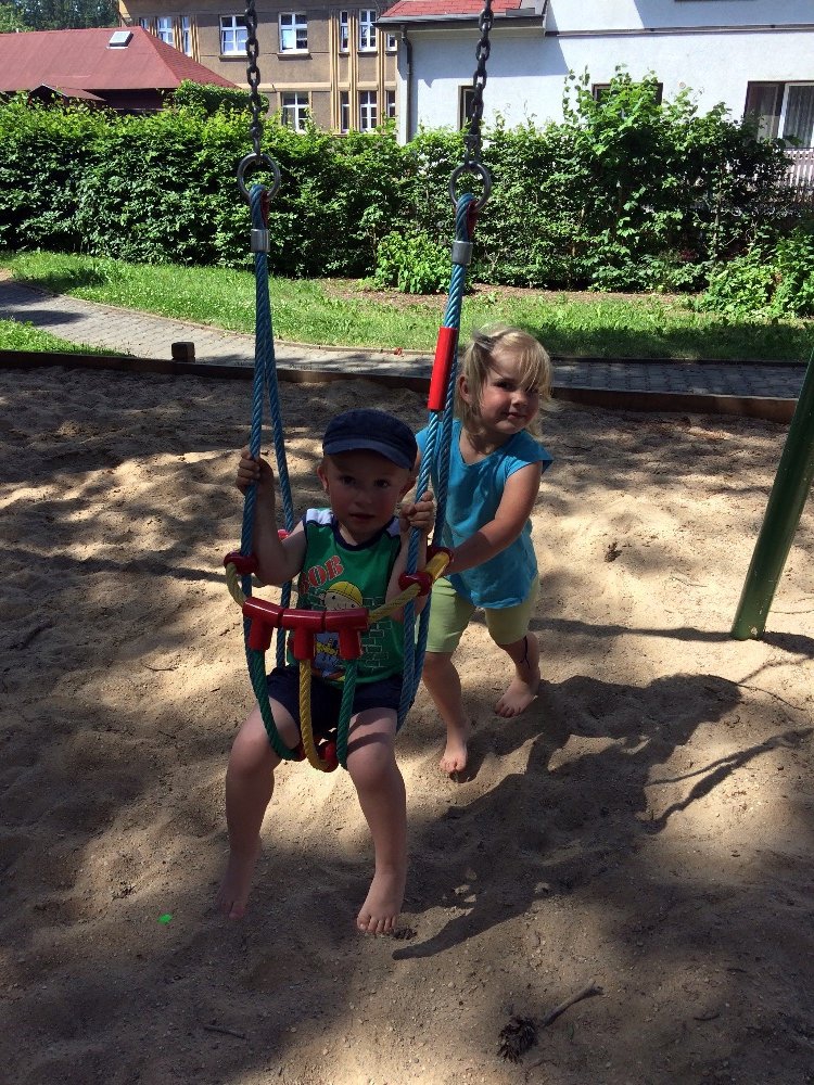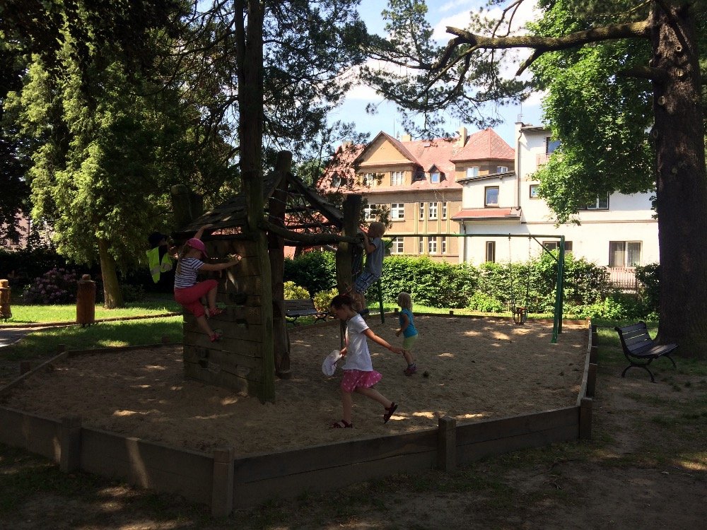 V pátek 1. června jsme oslavili Den dětí. Děti dostaly dvě nové hry - didaktický kvíz o zvířatech a stavebnici. Pochutnaly si na zmrzlince a vyřádily se v Pellyho parku.
