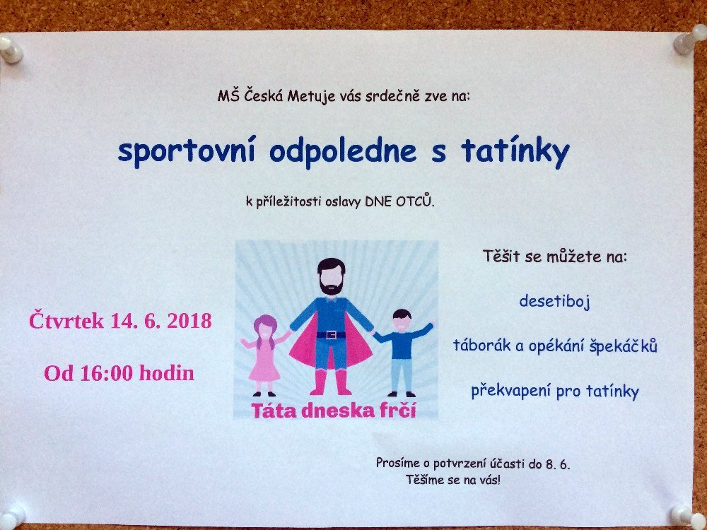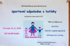 Maminky mají svůj svátek v květnu, tatínkové v červnu. Aby taťkům nebylo líto, že jsme v květnu slavili pouze s maminkami, uspořádali jsme pro ně sportovní odpoledne.