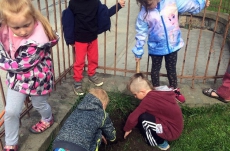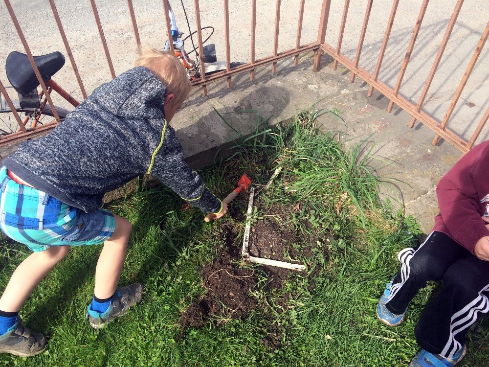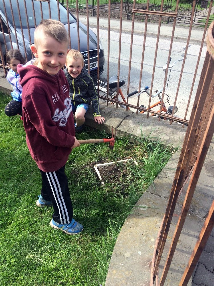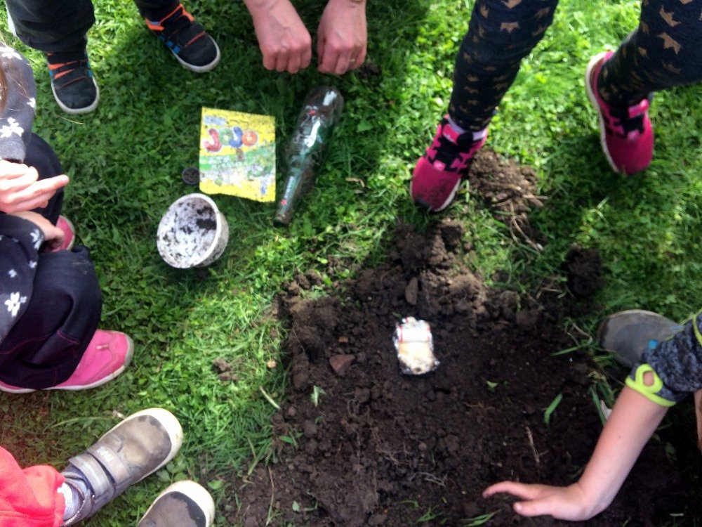 Je to přesně rok, kdy jsme na Den Země na naší školní zahradě zakopali "poklad". Chtěli jsme udělat ekologický pokus - zakopat odpadky, které častokrát vidíme odhozené