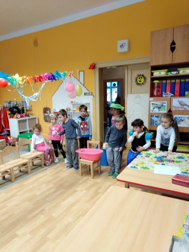 Děti si užívaly karnevalového veselí po celý týden ve svých krásných převlecích. Hlavní masopust proběhl samozřejmě v úterý. Tento den byl také originální tím, že jsme se podívali na projekci pohádky v sále obecního úřadu.