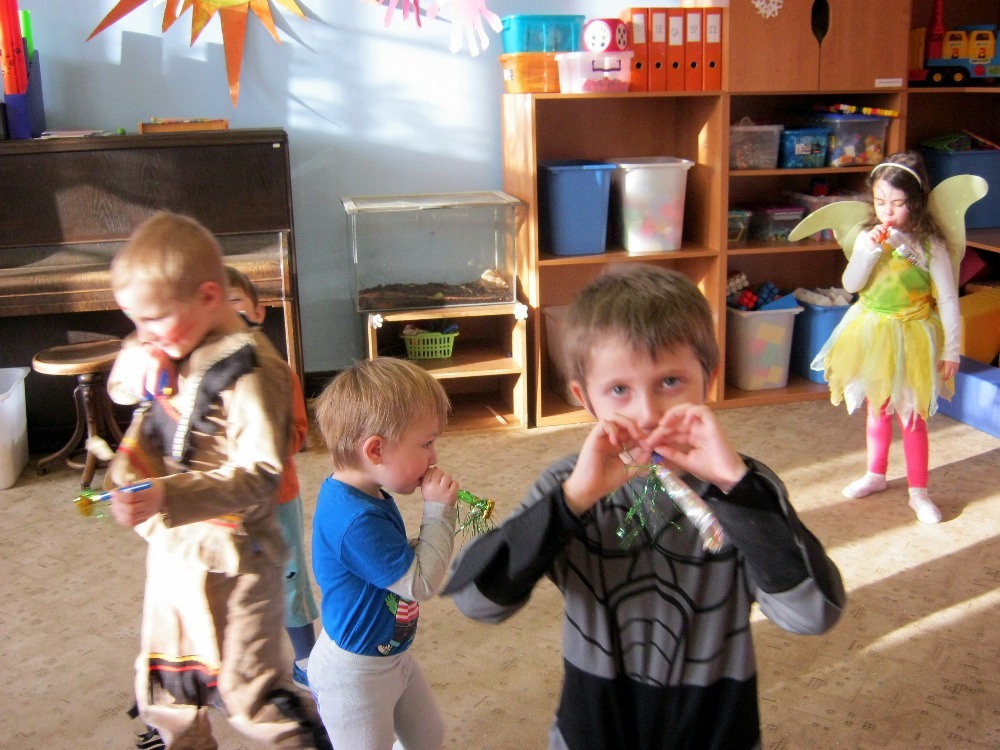 V únoru se děti seznámily s tradicí masopustu a společně jsme si užili karnevalové veselí.